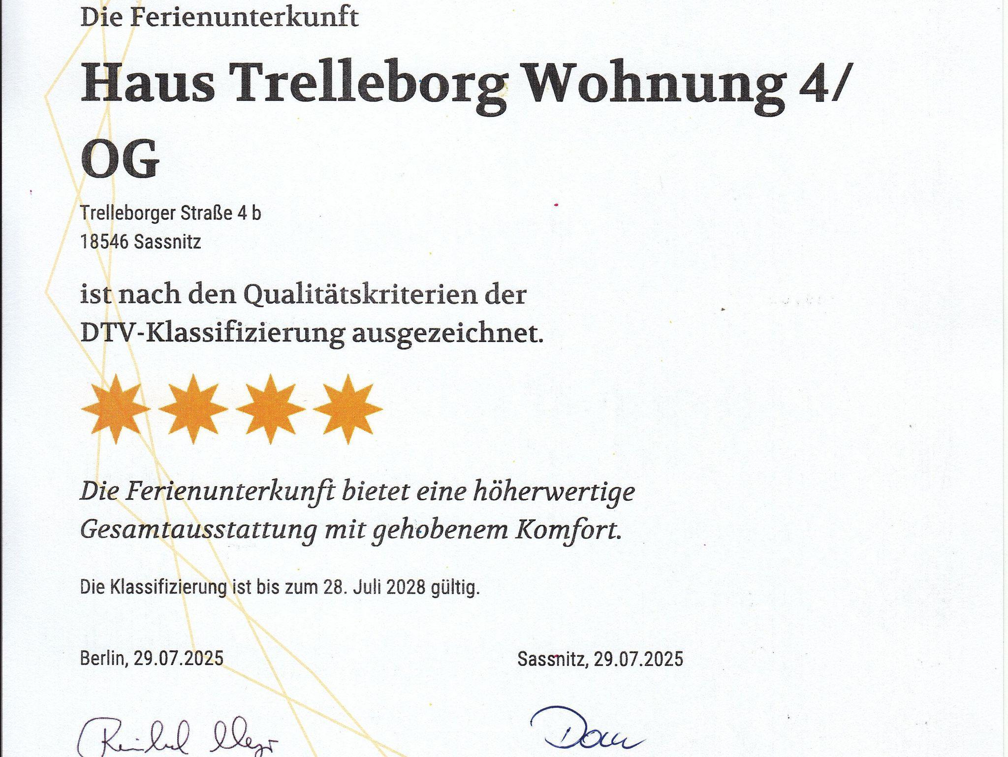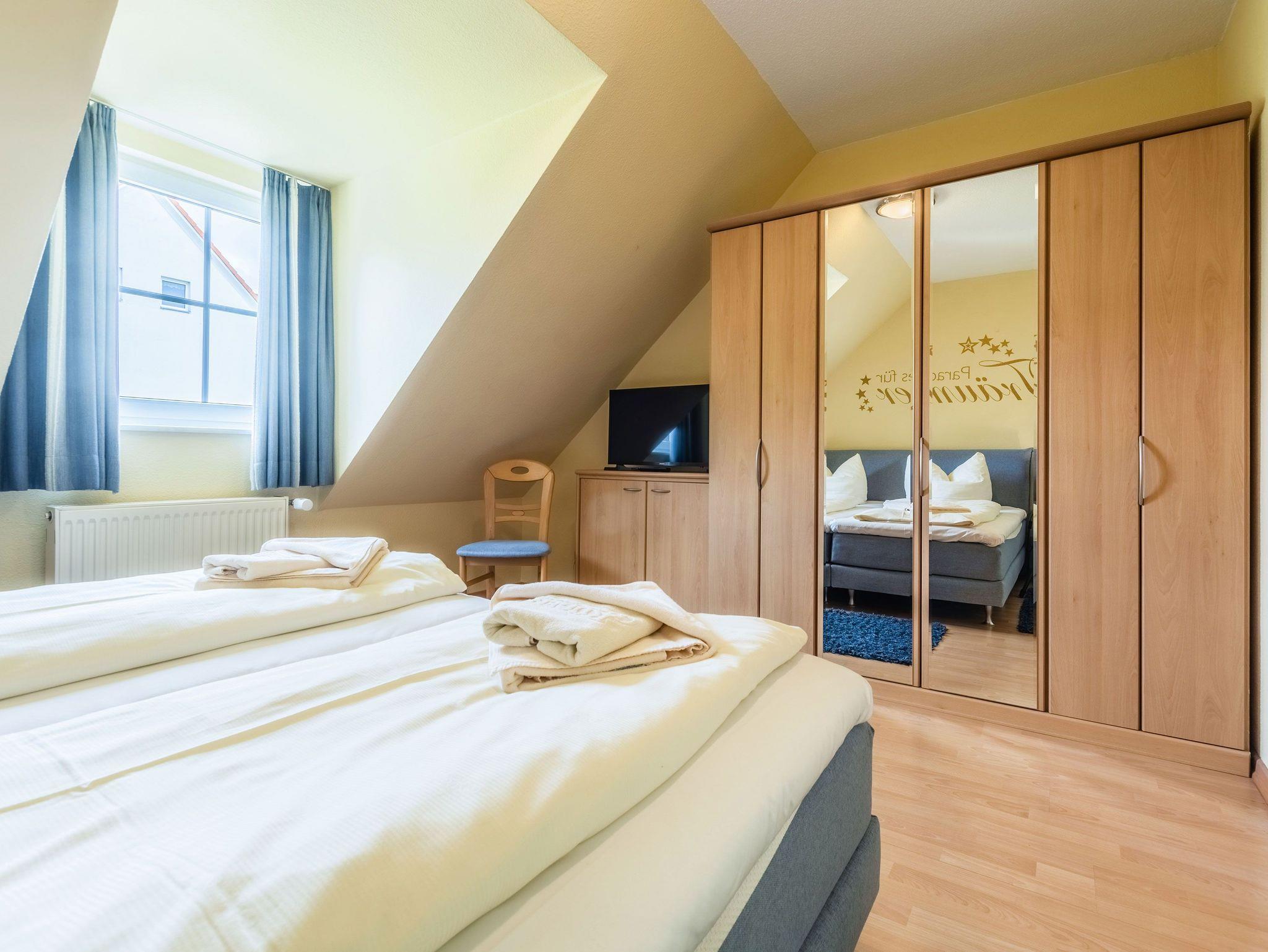 Die 60 m ² große und mit 4 DTV Sternen klassifizierte Ferienwohnung 4 befindet sich auf der linken Seite im Obergeschoss im Ferienhaus Trelleborg. Sie bietet mit ihren drei Zimmern ausreichend Platz für bis zu 4 Personen.