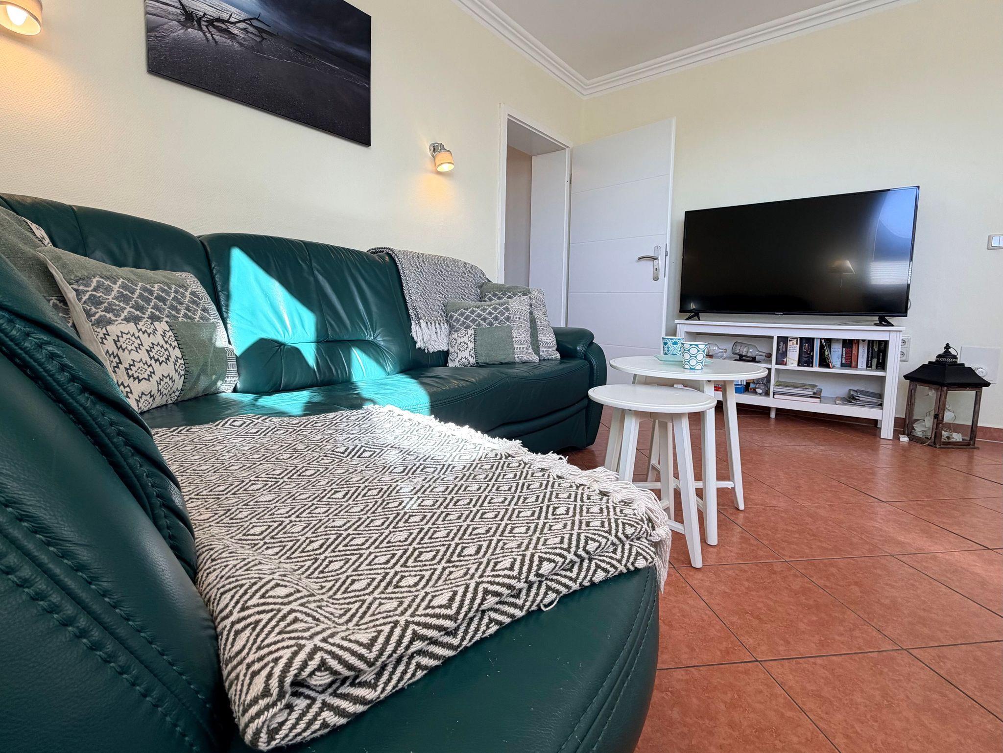 Wohnzimmer mit Eckcouch (Schlaffunktion) und Flachbild-TV