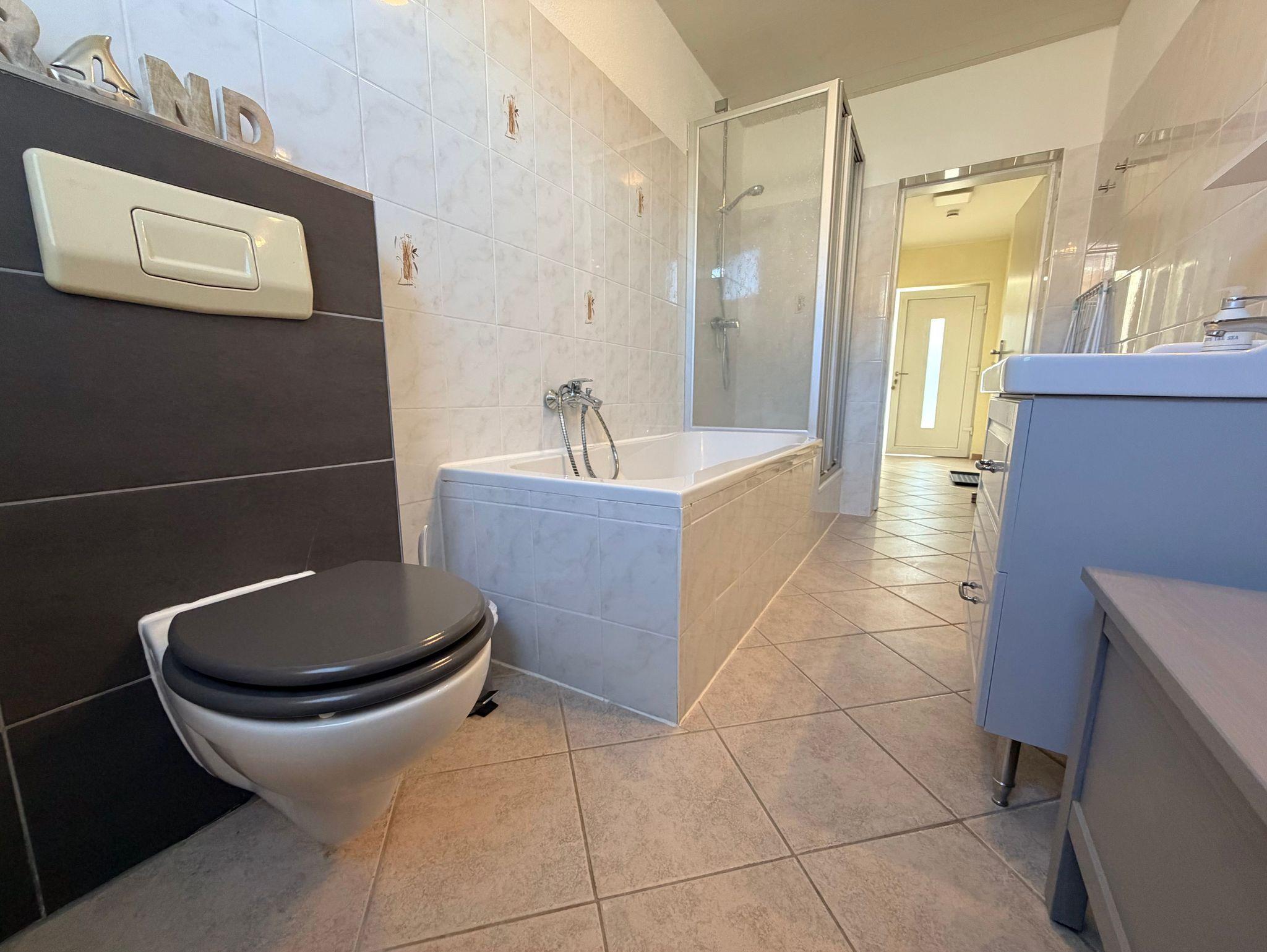 ein großzügiges Badezimmer mit Dusche, Badewanne und WC