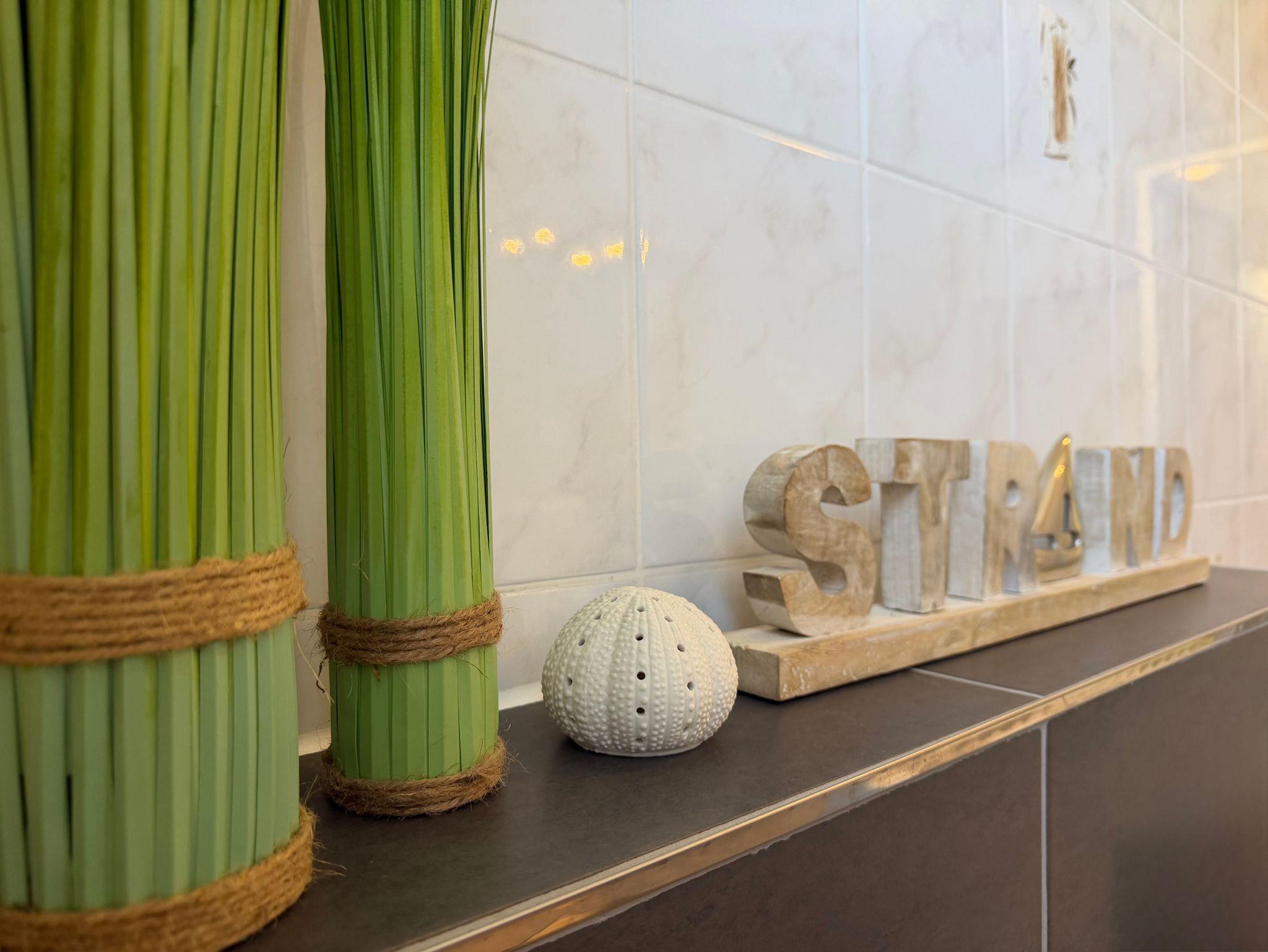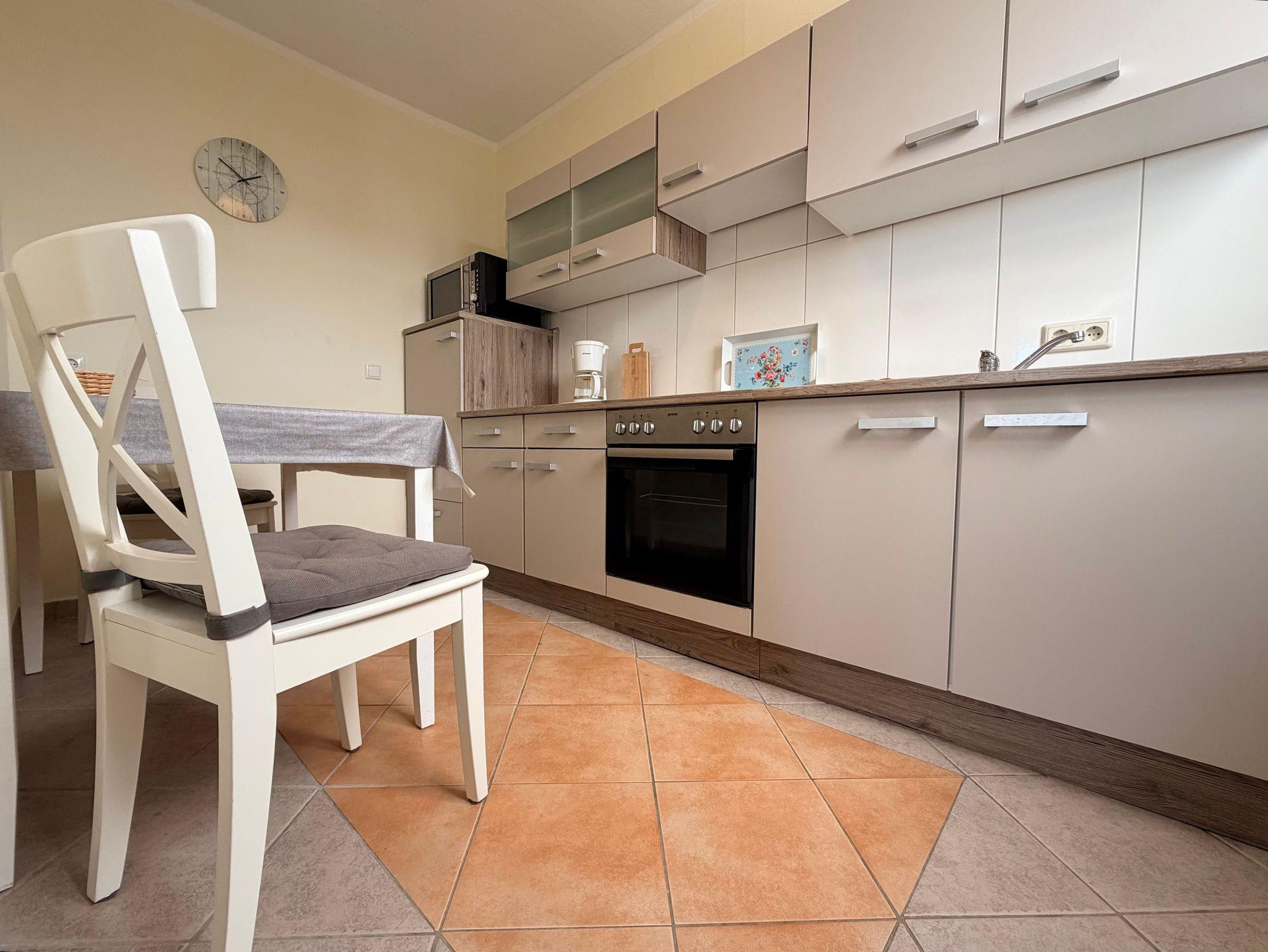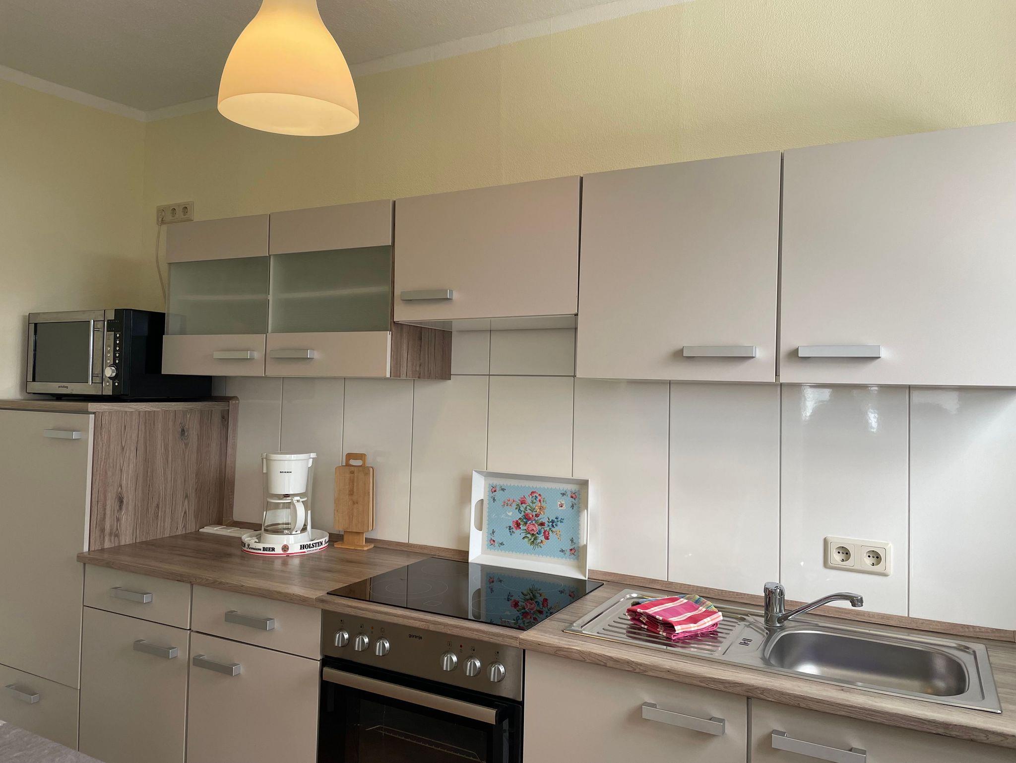 Die Küche lässt keine Wünsche offen: Ceranfeld mit Backofen, Kühlschrank, Mikrowelle, Kaffeemaschine, Toaster, Wasserkocher, Eierkocher sowie umfangreiches Geschirr, Besteck und Pött un Pann hier können Sie sich ganz wie zu Hause fühlen.