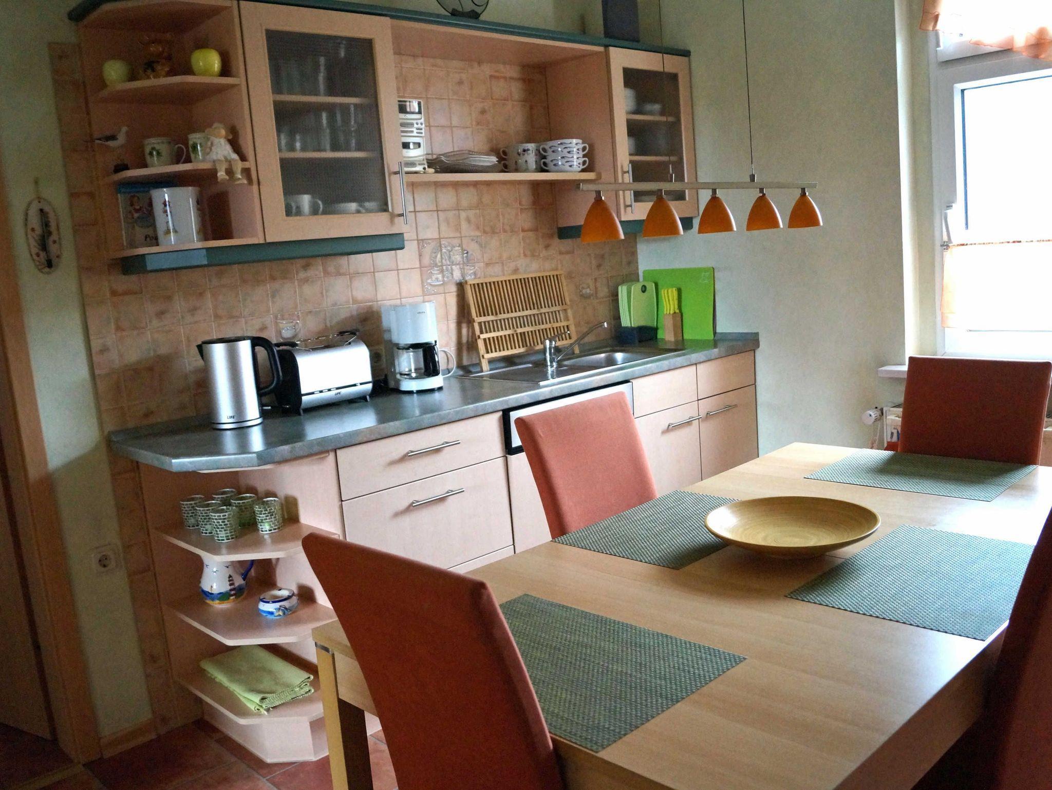 Die gemütlich Zweiraumferienwohnung ist 50 m² groß, befindet sich im Hochparterre, verfügt über ein Schlafraum mit Doppelbett und einen Wohnraum mit Schlafsofa für eine weitere Person. Im Wohnzimmer befindet sich eine Couch mit Sessel, Flachbild-TV, WLAN und ein Radio. Die separate Küche ist großzügig mit Esstisch, Herd mit Backofen, Spülmaschine, Mikrowelle, Kühlschrank mit Gefriermöglichkeit sowie allen wichtigen Utensilien ausgestattet. Im Badezimmer befindet sich eine Badewanne, Waschtisch und WC. Eine Parkplatzmöglichkeit gibt es in unmittelbarer Nähe.