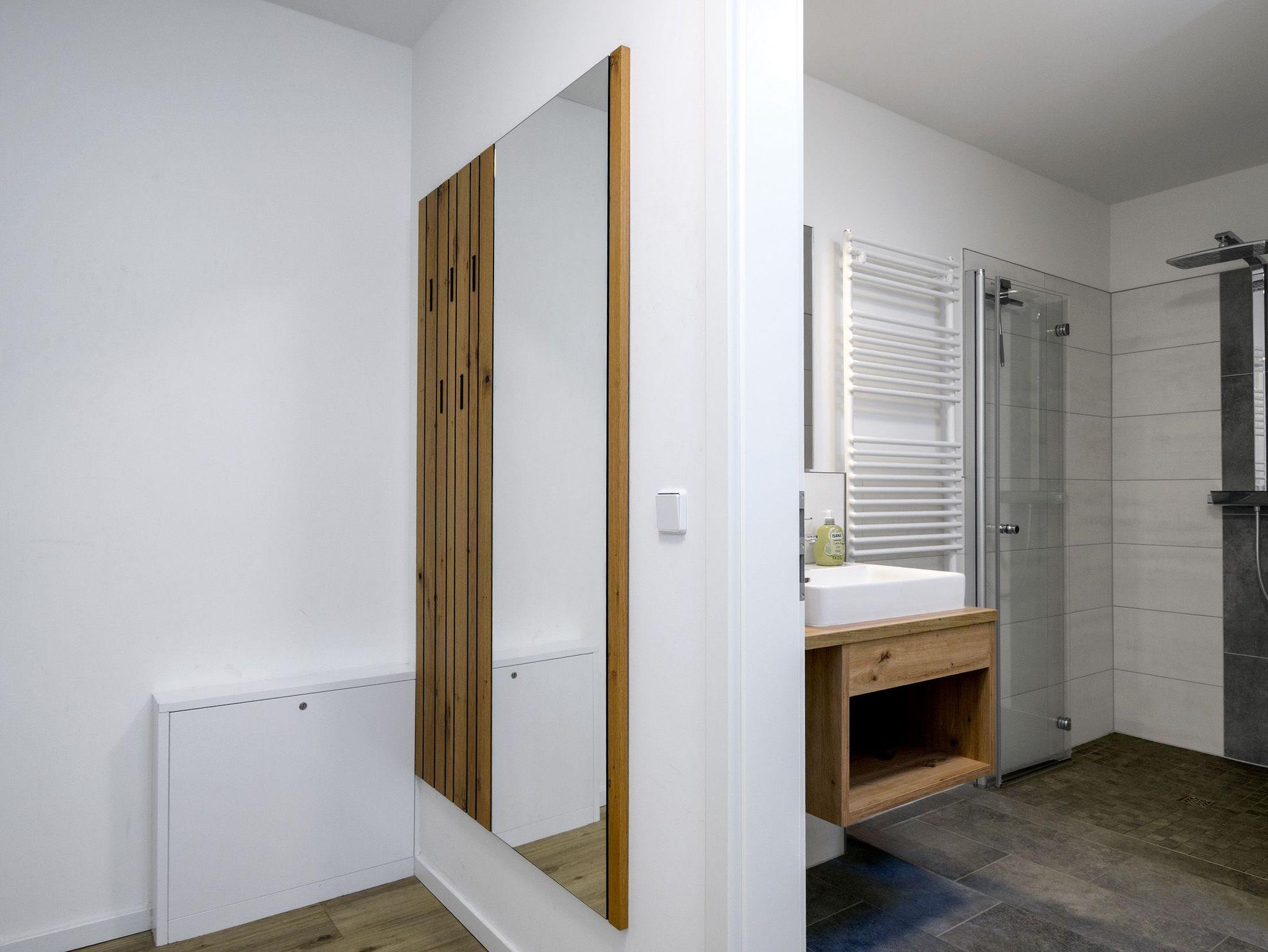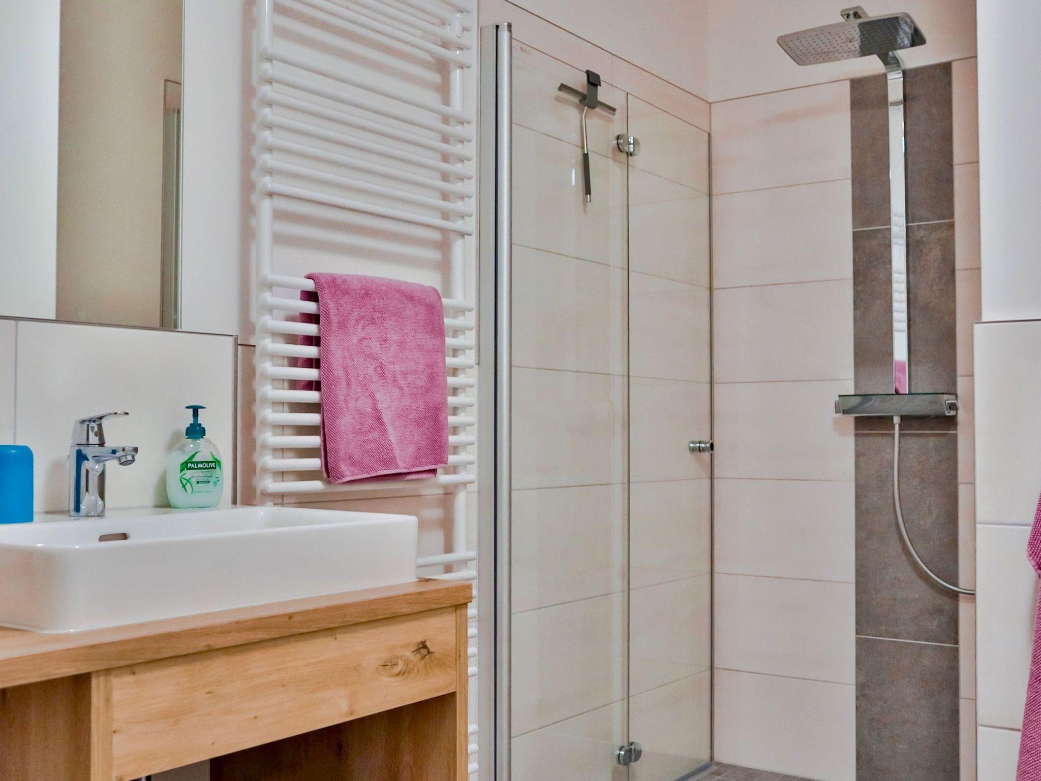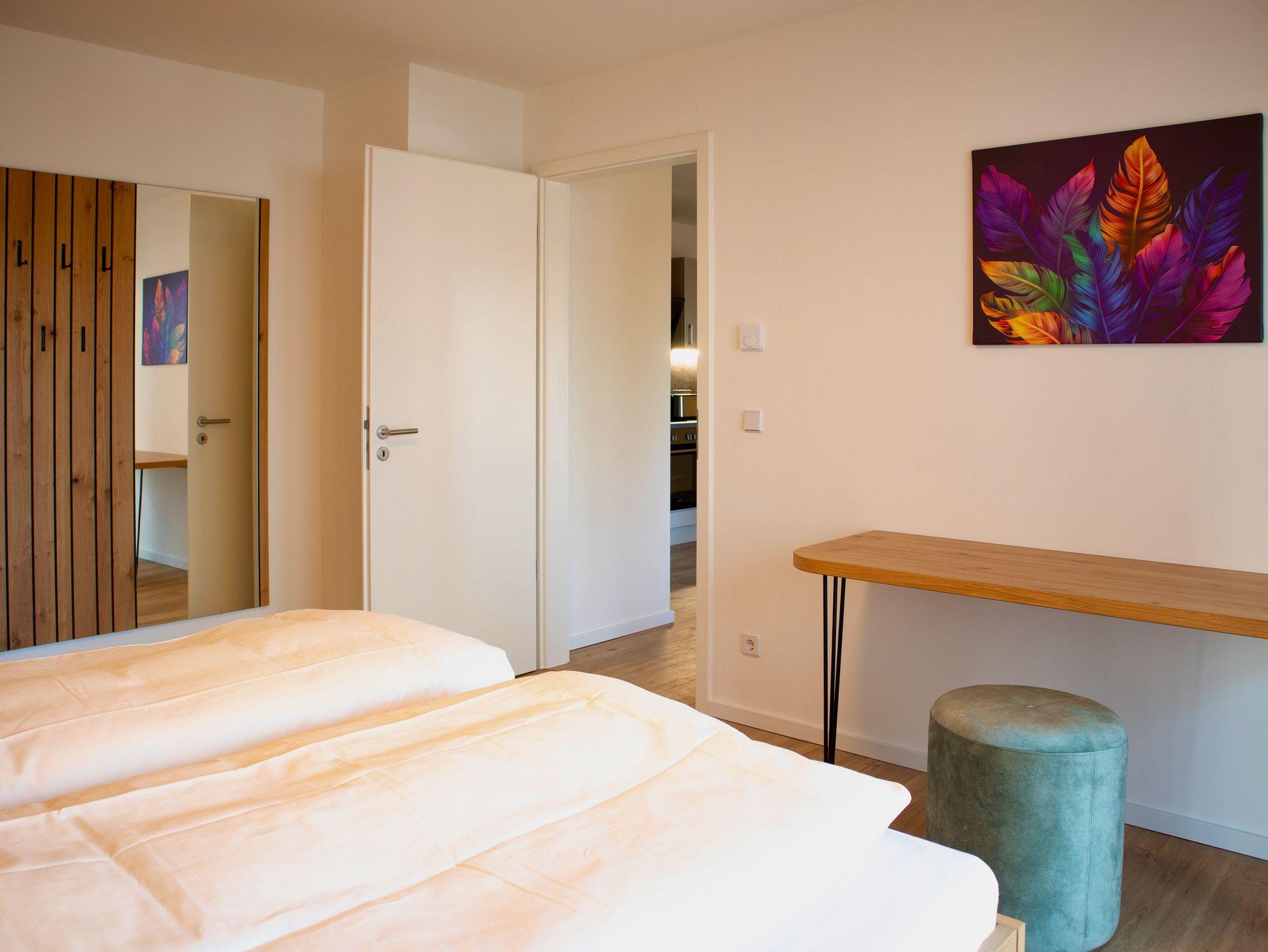 Neuwertige & hochwertig ausgestattete Ferienwohnung mit absoluter Wohlfühl-Atmosphäre. Die Wohnung verfügt über ein Schlafzimmer mit Doppelbett (200 × 180) sowie ein Badezimmer mit Dusche & WC, Fön.