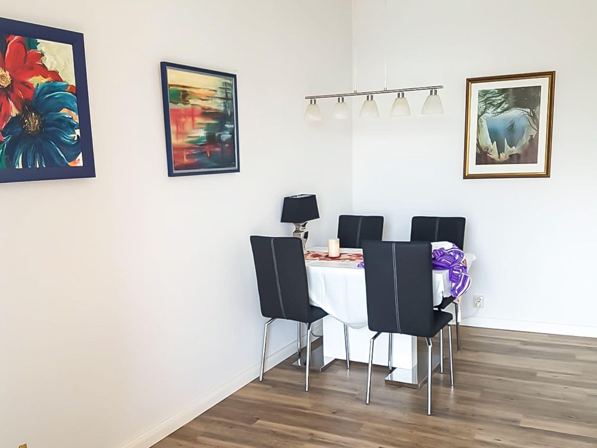 Die 72m² große Ferienwohnung hat ein Schlafzimmer, ein großes Bad mit Dusche, eine kleine separate Küche ein Wohnzimmer sowie ein Esszimmer mit Zugang zur großzügigen Dachterrasse mit Panoramablick auf Hafen und Ostsee.