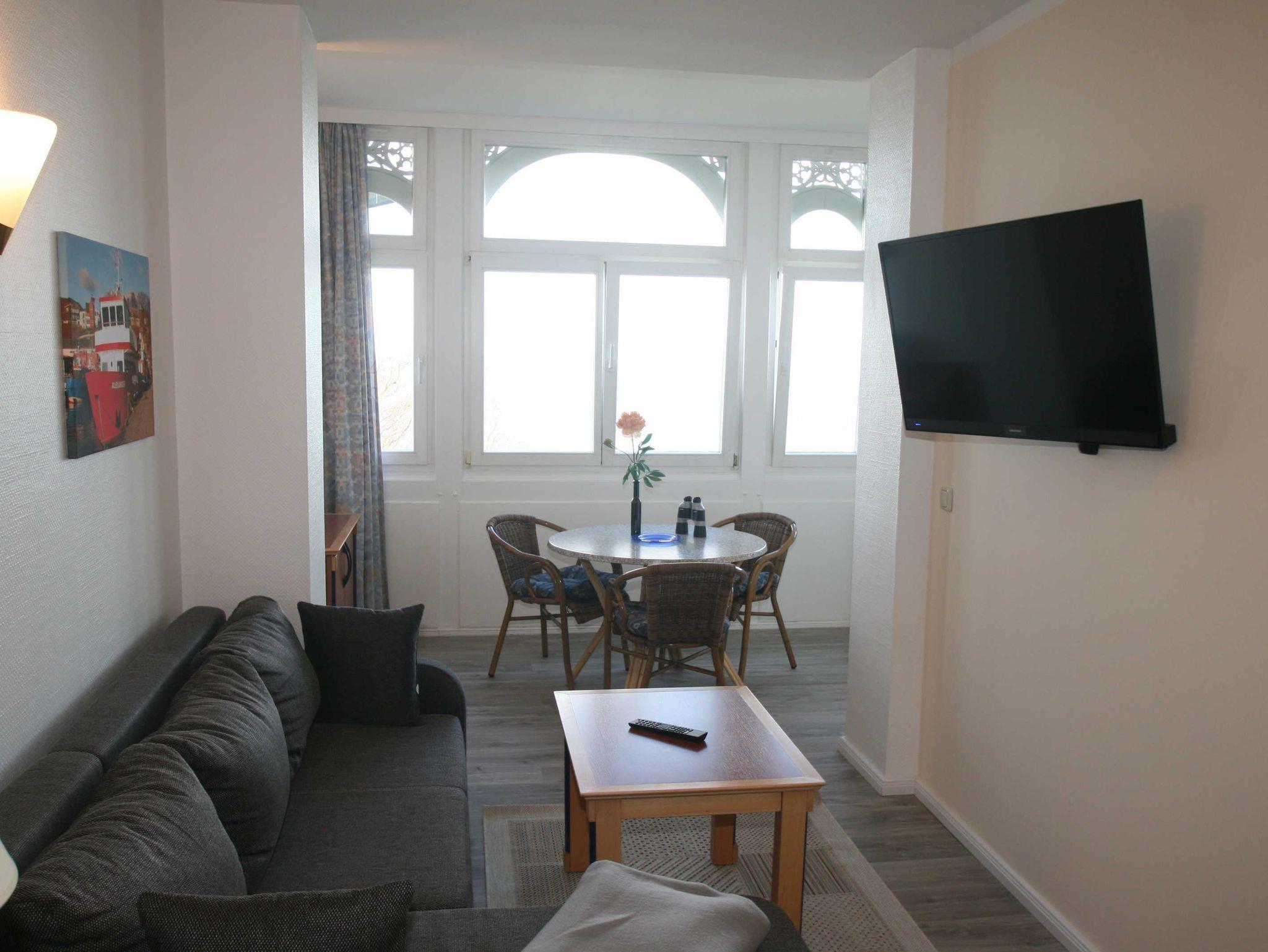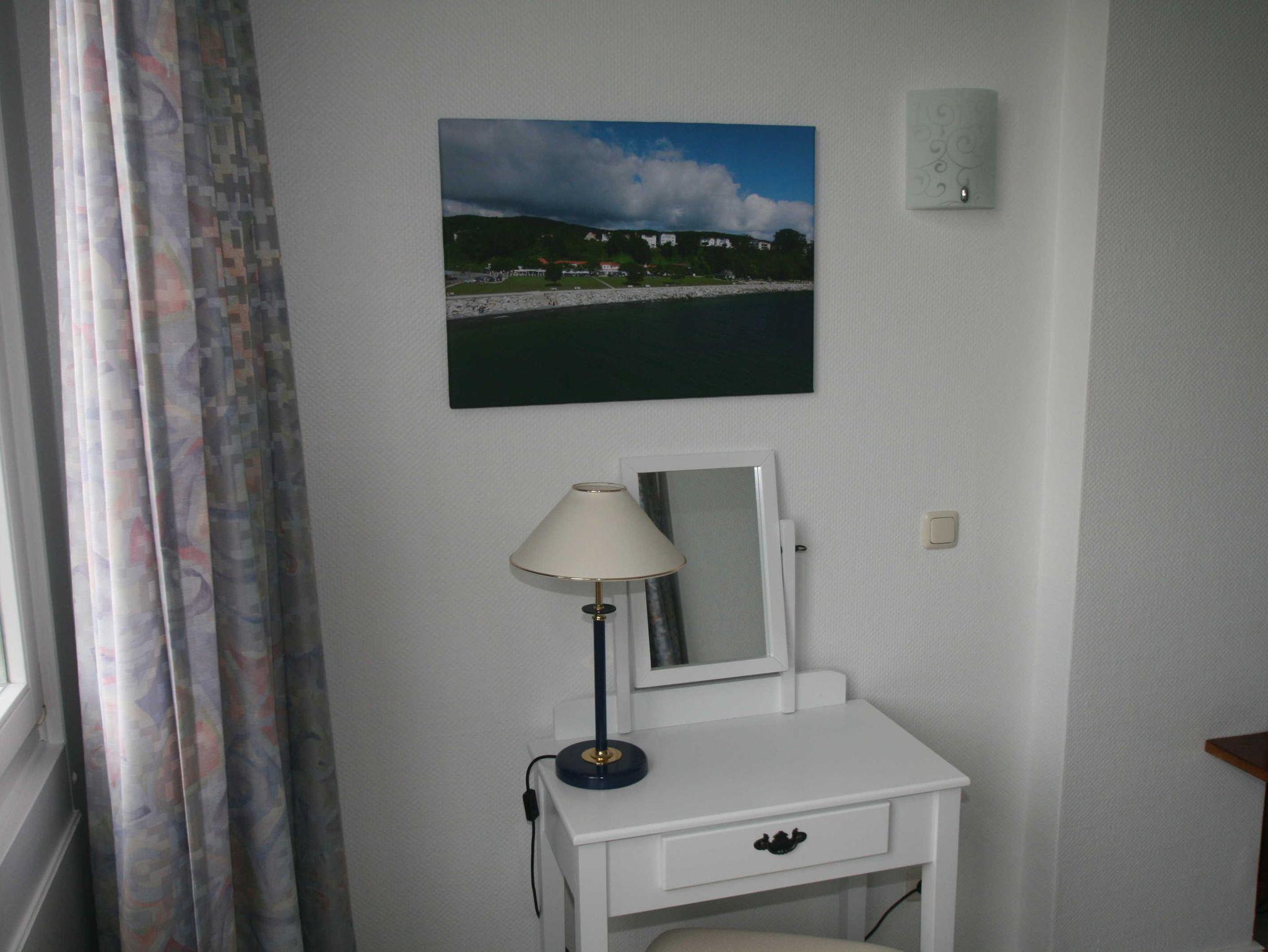 Das Appartement Königsstuhl verfügt über einem Wohnzimmer mit einer komplett eingerichteten Einbauküche mit Eierkocher, Filterkaffemaschine, Kaffepadmaschine, Toaster, Wasserkocher, 4 Platten-Cerankochfeld, Backofen,Kühlschrank, Geschirrspülautomat, ausreichend Geschirr und Besteck, Salz und Pfeffer, Zucker, Geschirrtuch, u.v.m. .Sie finden bei ihrer Anreise auch diverse Getränke im Kühlschrank, die Sie gegen Entgeld gerne nutzen können.Im Wohnzimmer befindet sich ein Schreibtisch, eine gemütliche Wohnlandschaft, die dann auch für 2 Aufbettungen genutzt werden kann, einen grossen Flatscreen-TV und eine Multifunktionanlage, mit der Sie auch CD' s & DVD's abspielen können. Wir leihen Ihnen auch gerne eine DVD über die schöne Insel Rügen aus.