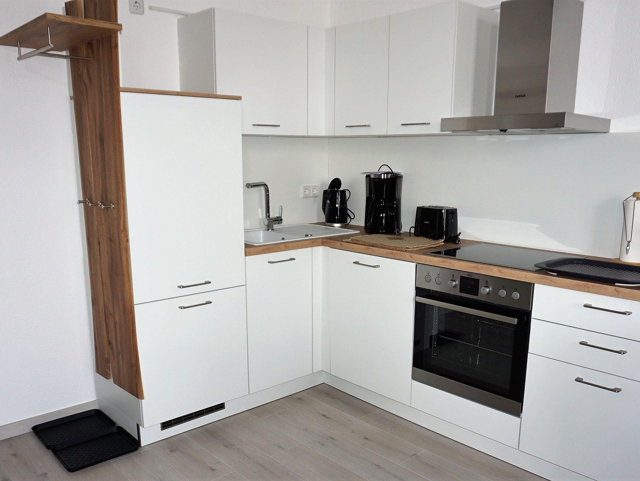 In der ebenfalls neu - eingerichteten und ausgestatteten Küchenzeile (mit Backofen und Spülmaschine) kann nach Lust und Laune gekocht werden.