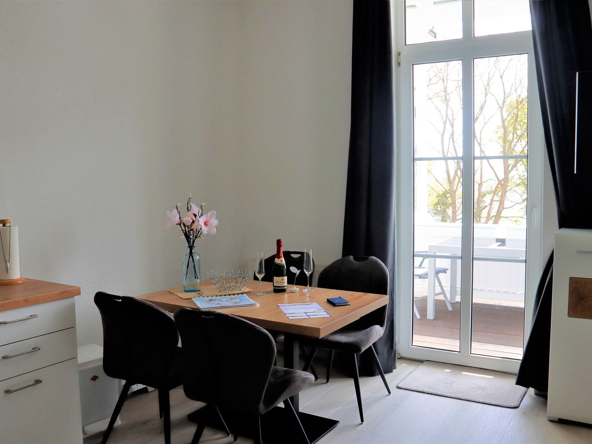Komfortable 2-Zimmer-Ferienwohnung mit Meerblick in der historischen Villa Azur in Sassnitz auf Rügen.