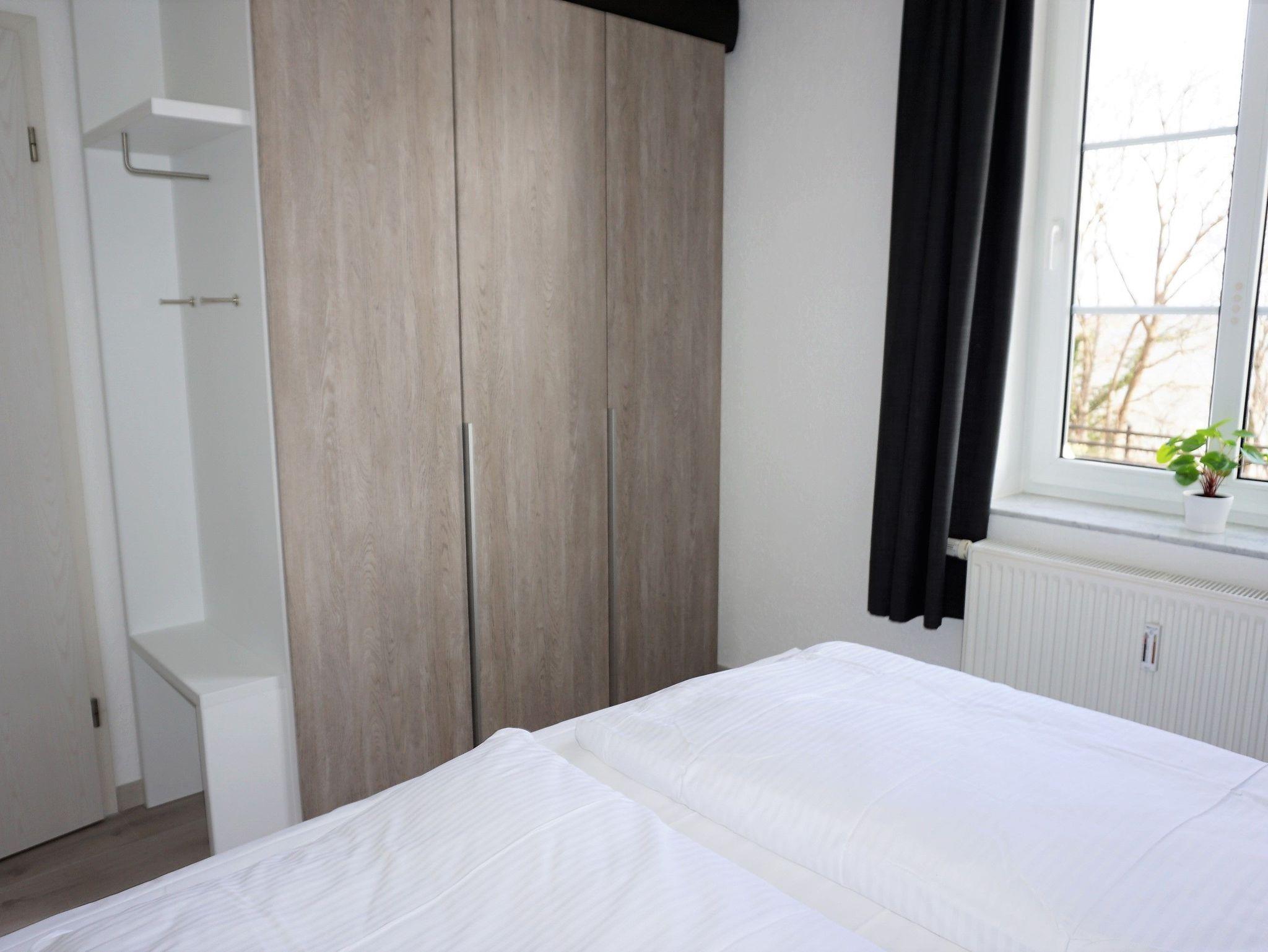 Das Schlafzimmer überzeugt mit einem bequemen Doppelbett. Verdunklungs-Vorhänge sorgen für einen ungestörten Schlaf.