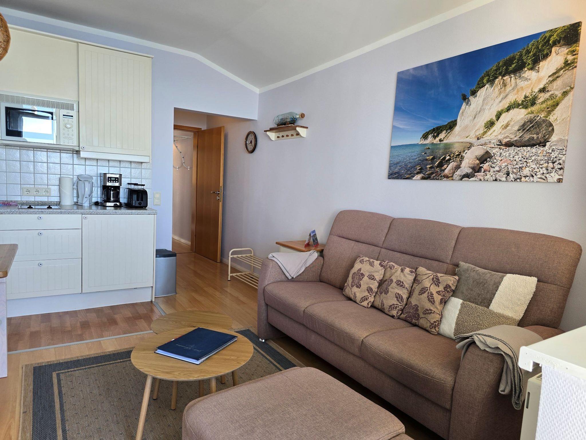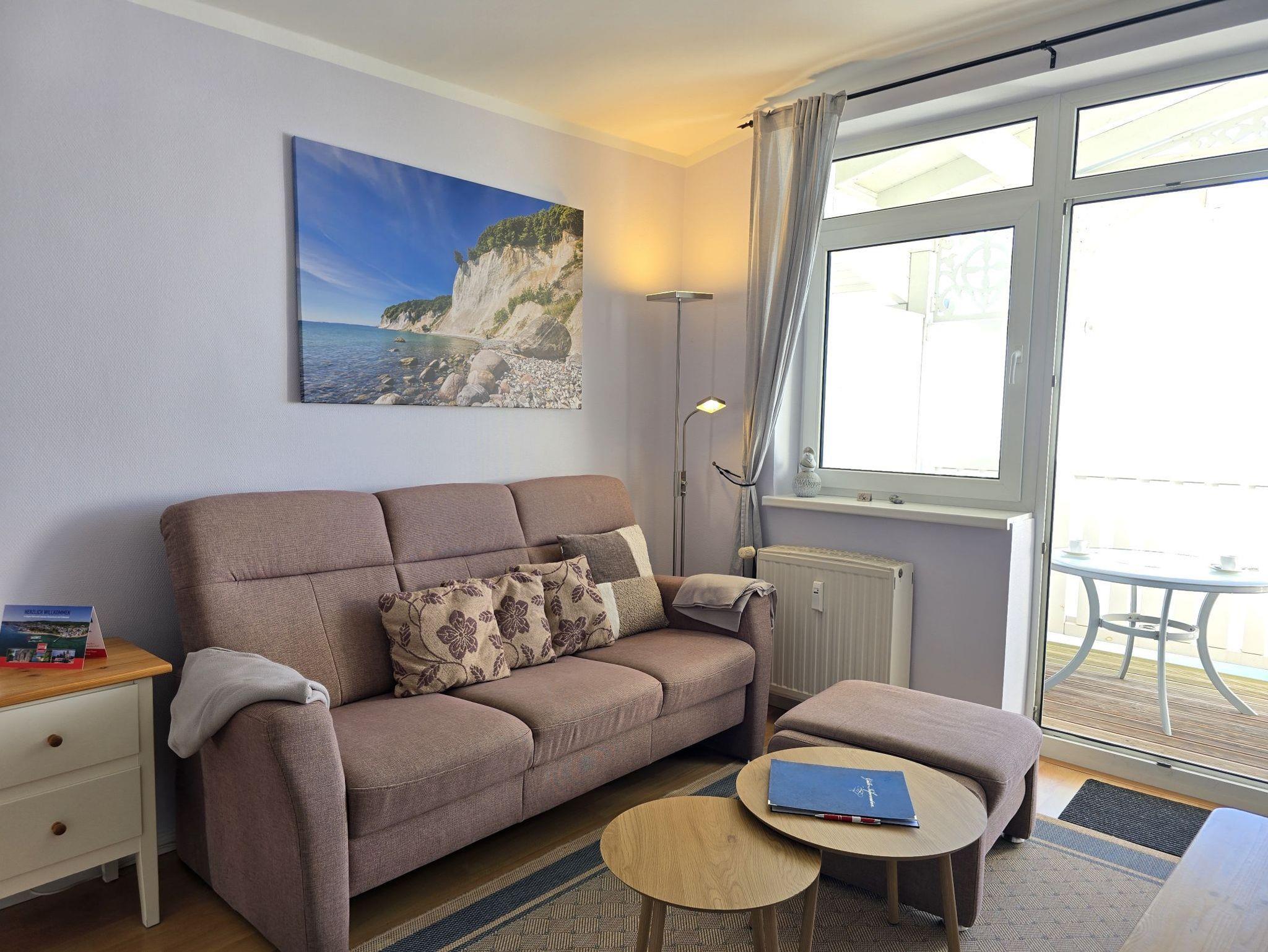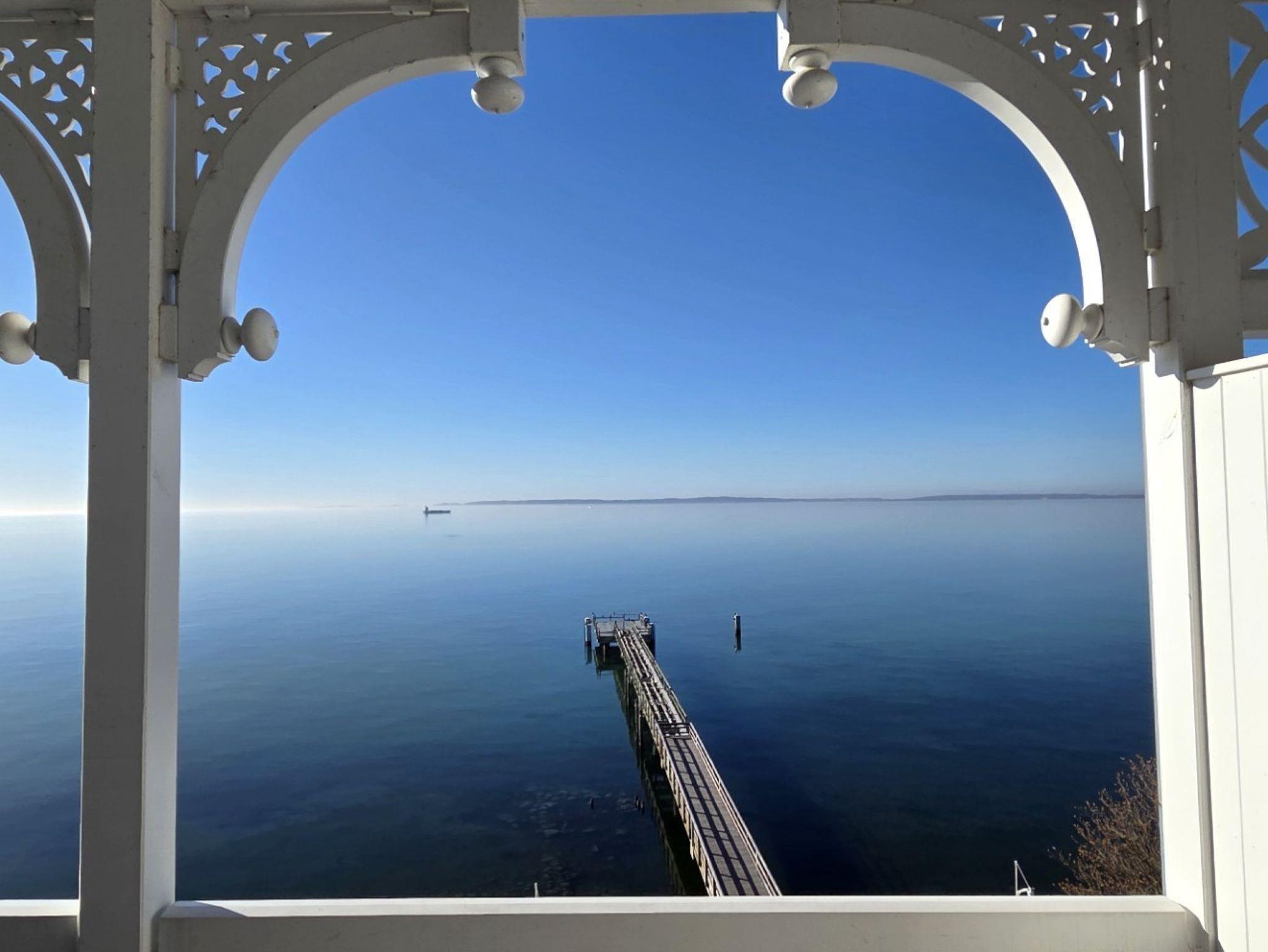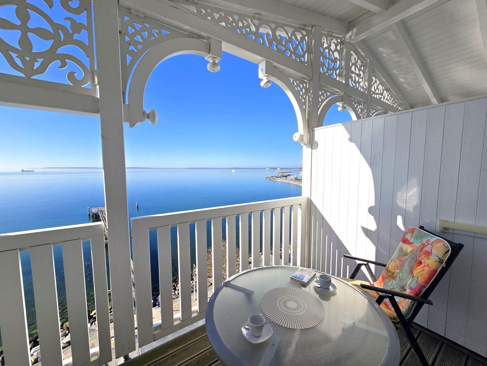 Sie genießen einen wunderschönen Seeblick, sehen Fährschiffe und Fischerboote vorbeiziehen und haben einen Weitblick bis hin zu den Ostseebädern Binz und Sellin.