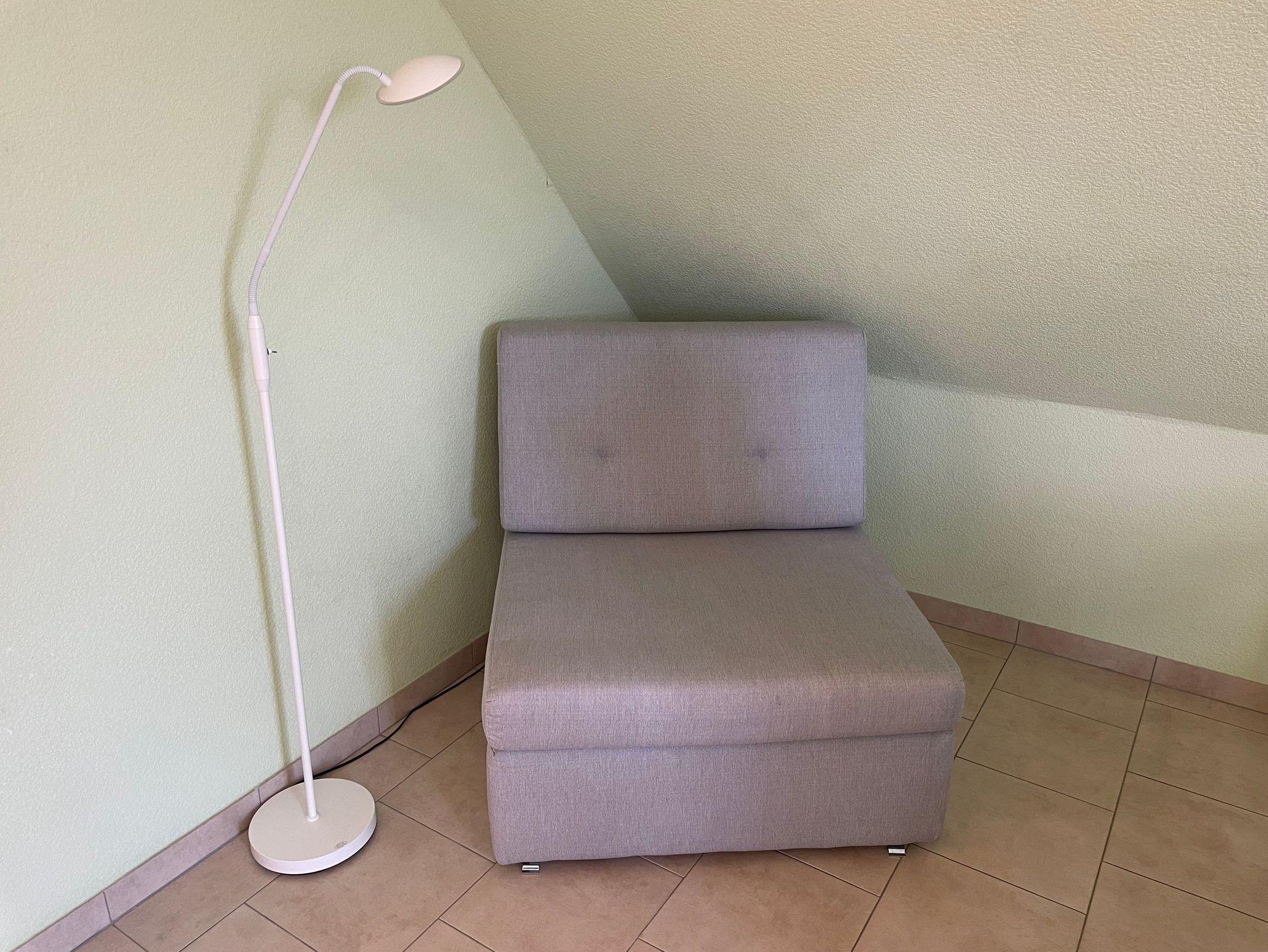 Die Ferienwohnung befindet sich im ersten Obergeschoss eines Einfamilienhauses, das von den Vermietern bewohnt wird und hat einen eigenen Eingang. Der gemütliche Wohn-/Schlafraum verfügt über einen sonnigem Balkon. In dem angrenzenden Wohnraum mit Küchenzeile gibt es zusätzlich eine Möglichkeit zur Aufbettung (Schlafsessel) für eine weitere Person. Die Küchenzeile verfügt unter anderem über einen 2-Platten-Herd, Mikrowelle, Wasserkocher, Toaster Auch dieser Raum hat einen Balkon, von dem Sie die Abendsonne genießen können. Das große Badezimmer rundet das Angebot der Ferienwohnung ab.
