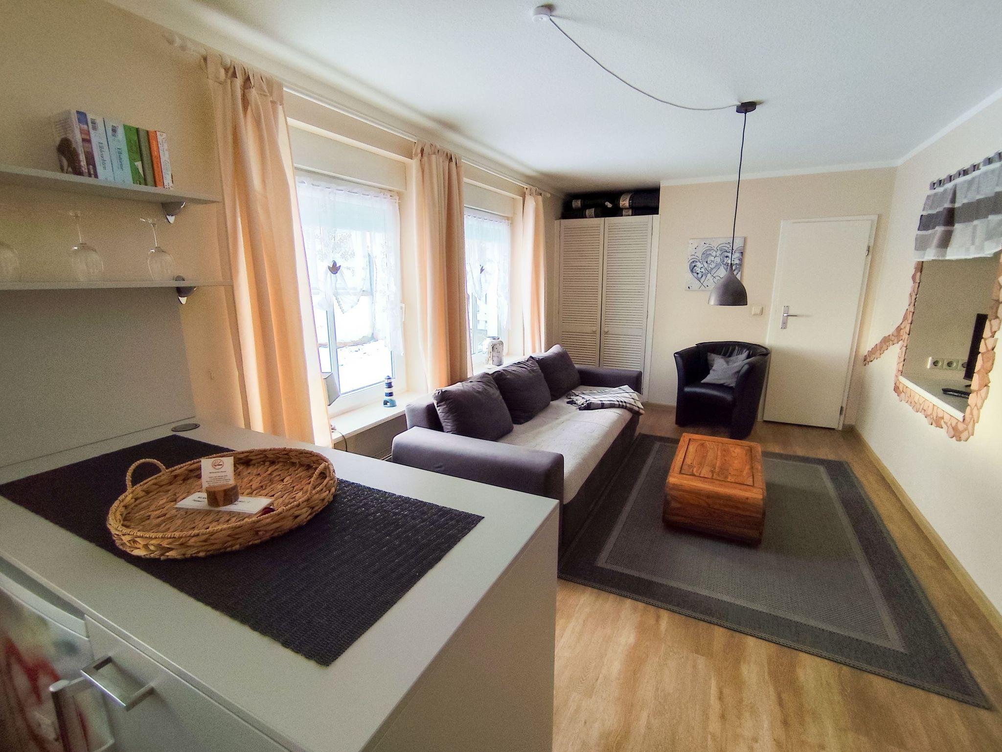Gemütliches 2-Raum-Appartement mit ebenerdigem Zugang, Meerblick, Bad, Küche, Wohn- und Schlafzimmer. Es verfügt über SAT-TV, Radio, Telefon und WLAN. PKW-Stellplatz auf dem Grundstück vorhanden. Die Wohnung verfügt über einen direkten Gartenzugang.