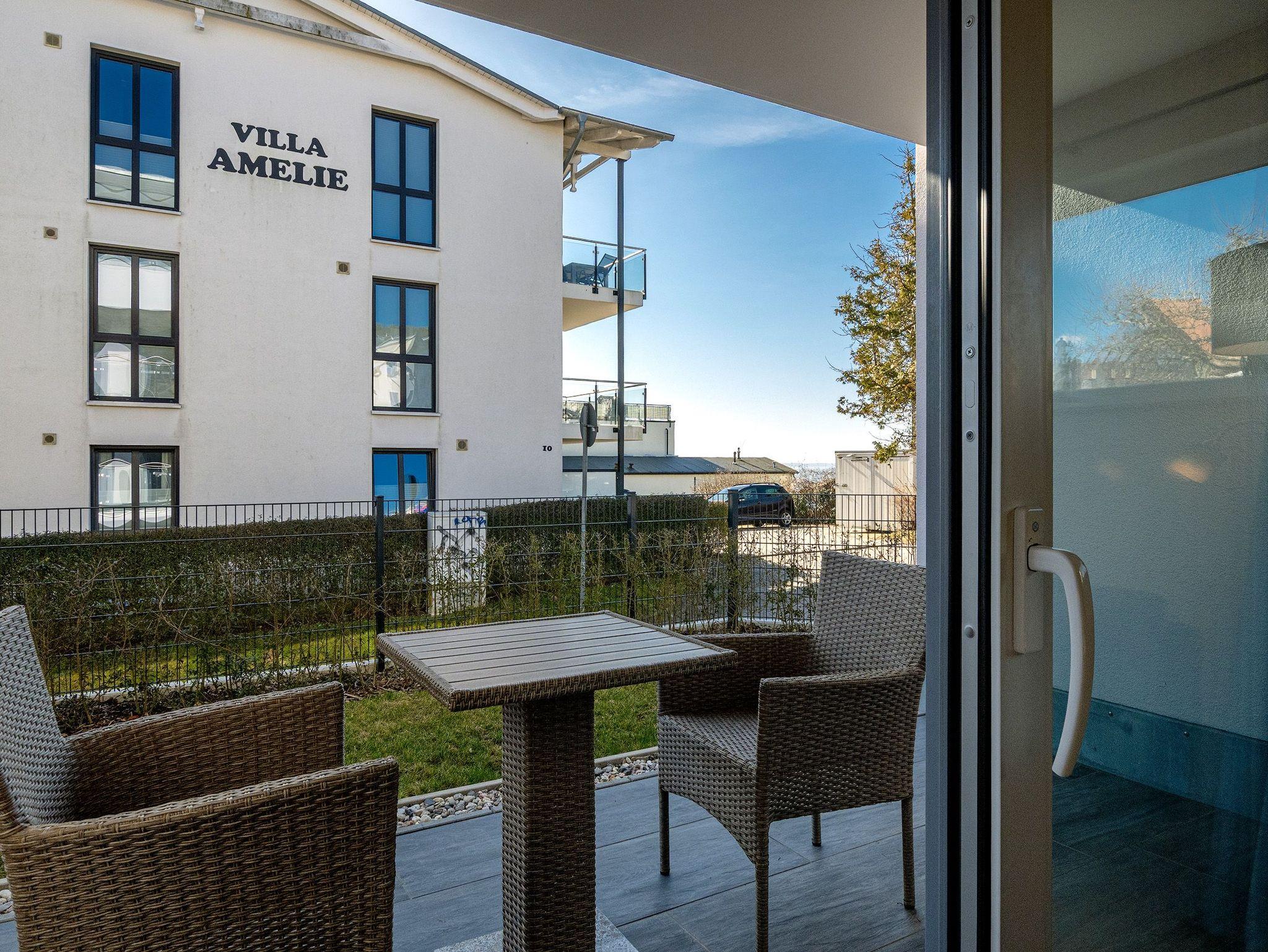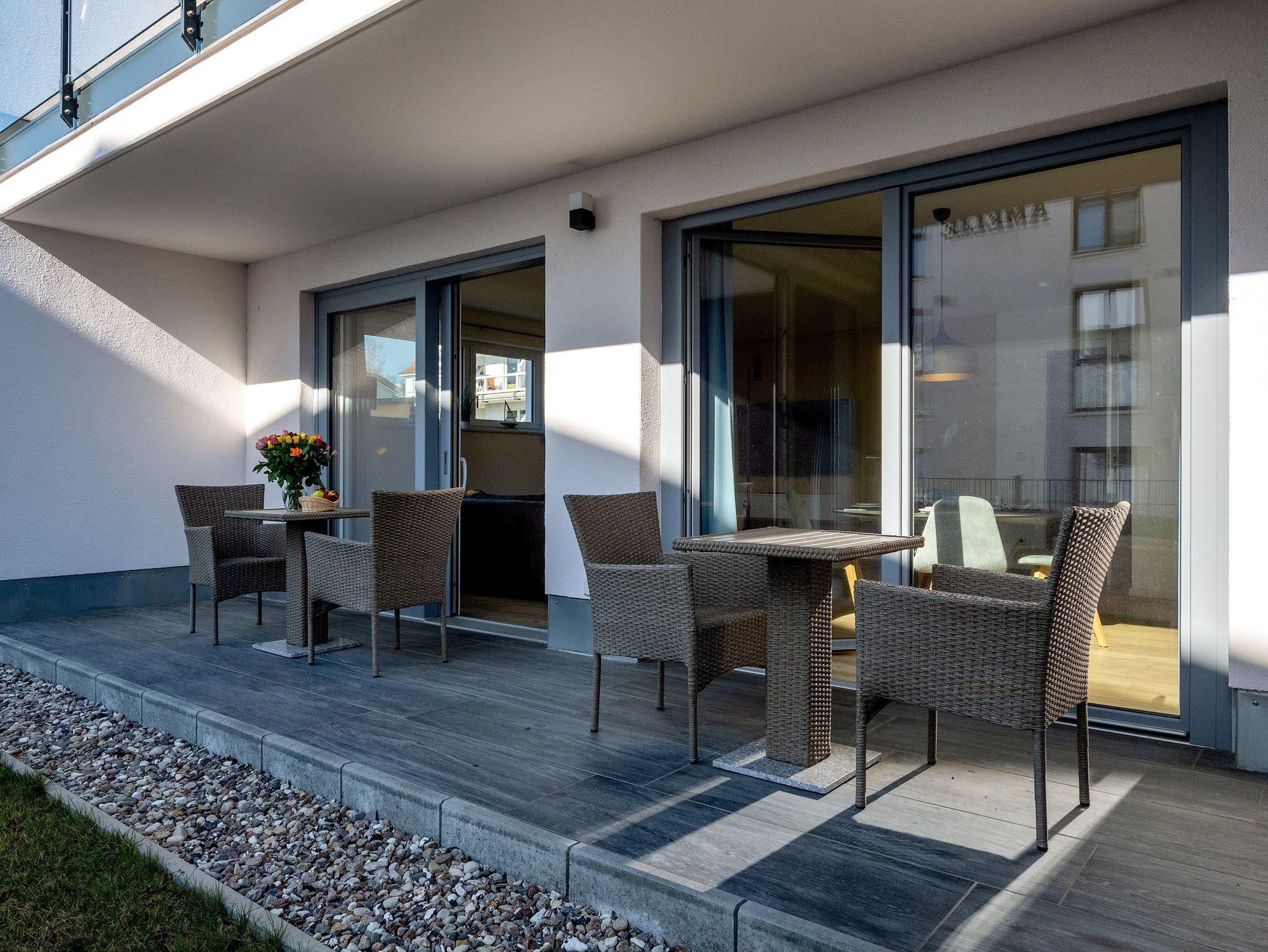 Moderne Ferienwohnung mit Meerblick, Balkon und hochwertiger Ausstattung in Sassnitz, nahe Ostsee und Stadthafen.