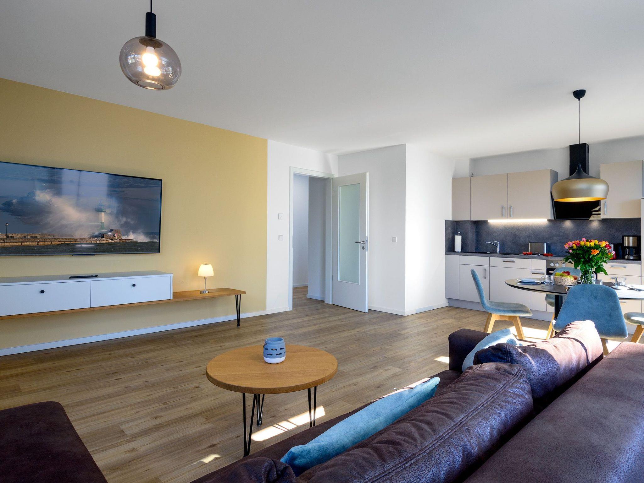 Das Haus beherbergt 7 moderne, individuell und hochwertig eingerichtete 2, 3-Raum-Appartements sowie eine Penthouse Wohnung. Alle Wohnungen verfügen über getrennte Wohn- und Schlafzimmer, große Badezimmer mit ebenerdiger Dusche, WC und Badewanne, eine voll ausgestattete moderne Einbauküche im Wohnzimmer und Terrasse oder Balkon mit Blick auf die Ostsee.