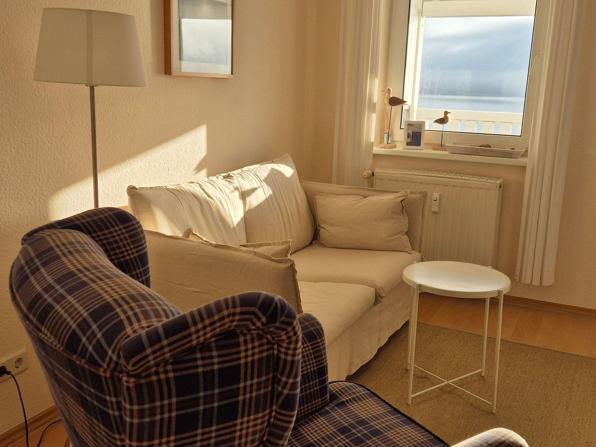 • Im gemütlichen Wohnzimmer mit Couchgarnitur finden Sie einen Esstisch sowie Unterhaltungsgeräte, einen Flachbild TV und eine Stereoanlage (sofern Sie mal den Blick vom Meer abwenden können).
