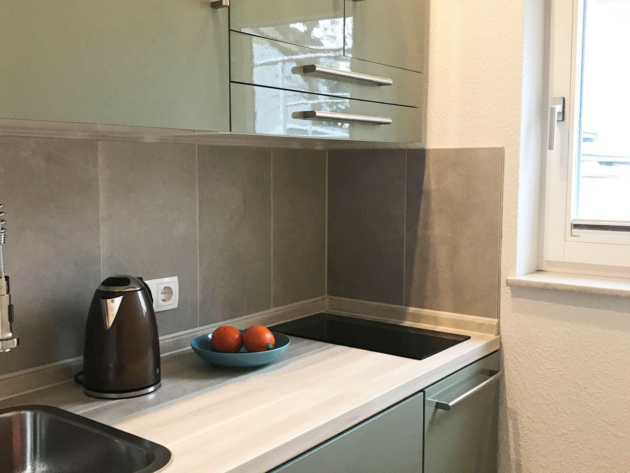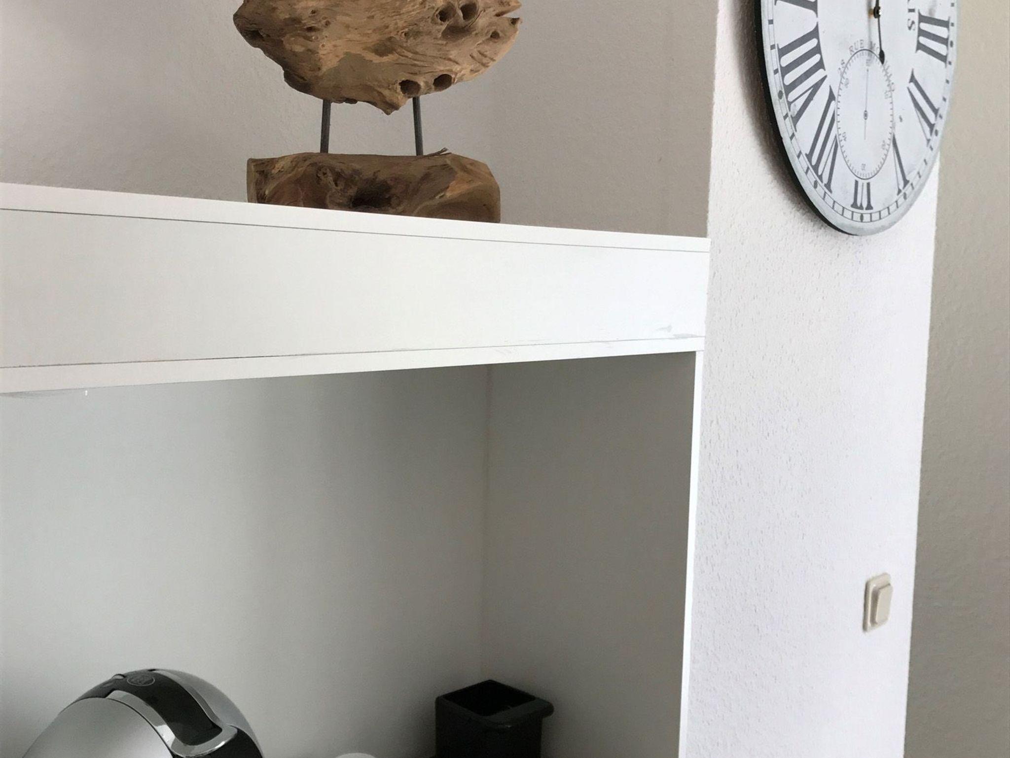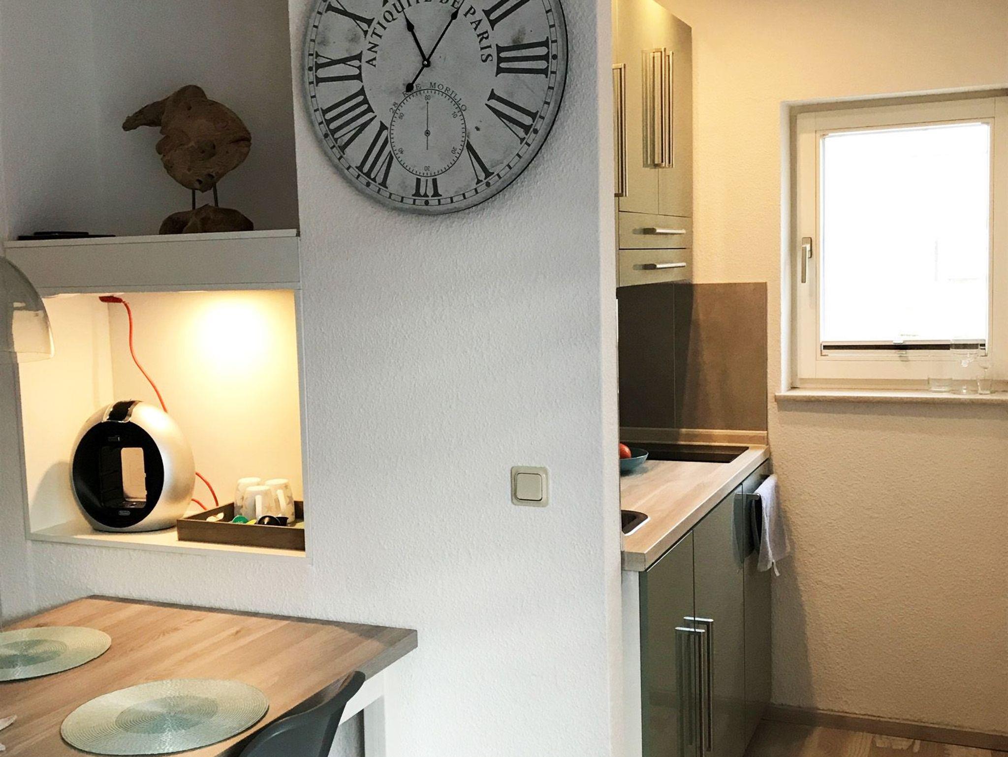 • Die Küchenzeile ist offen zum Wohnbereich und ist mit einem 2 Platten Induktionsherd, Spülmaschine, Kapsel-Kaffeemaschine, Wasserkocher und Toaster ausgestattet.