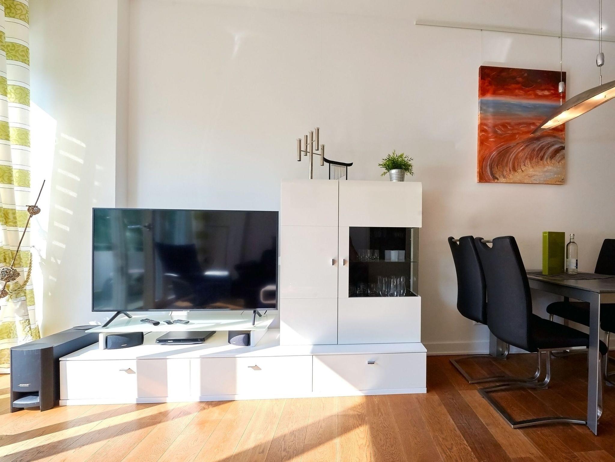 Flat-Screen-TV im Wohnbereich (3 D) und in jedem Schlafzimmer, Blue Ray Player sowie Bose Soundanlage