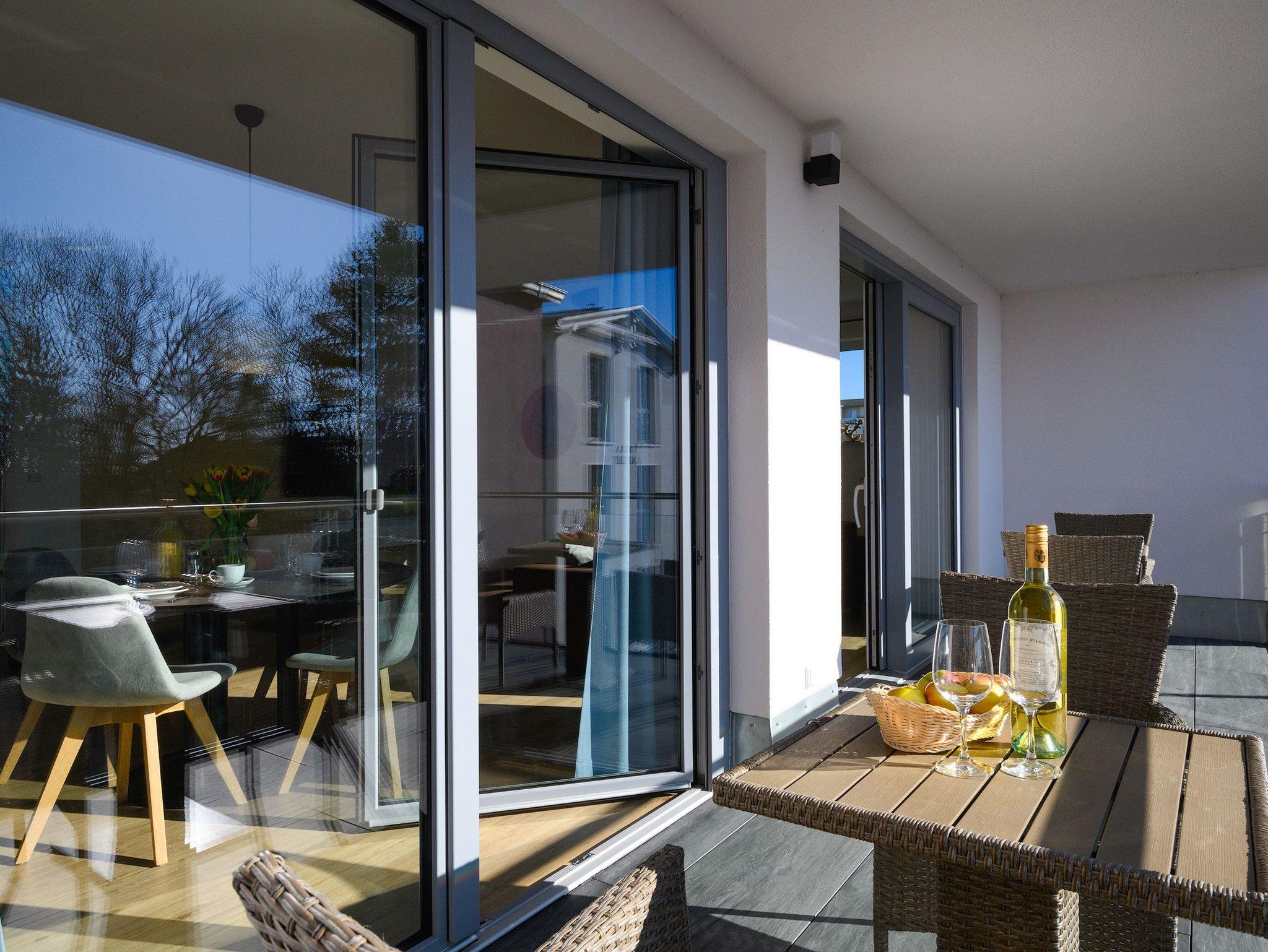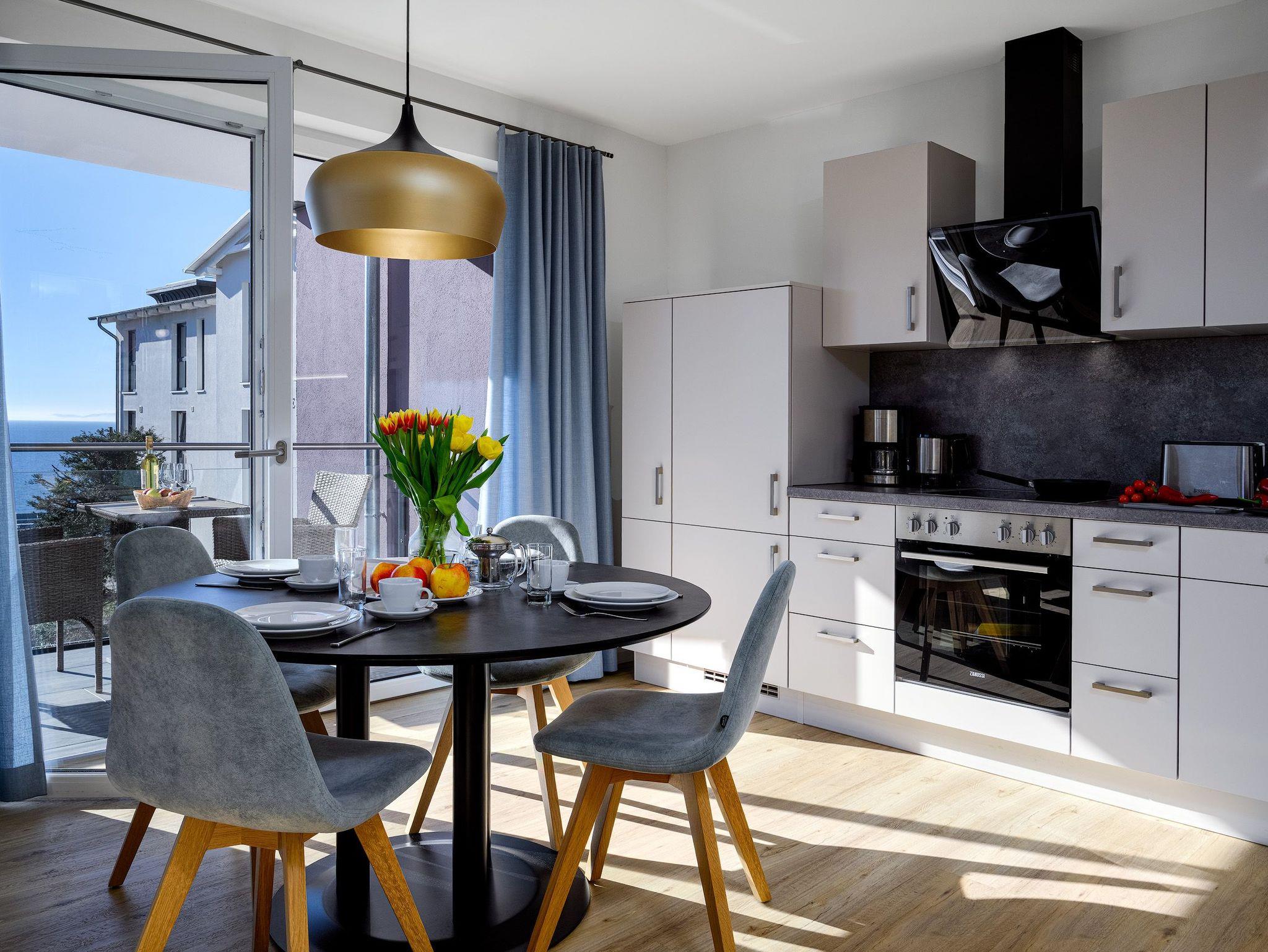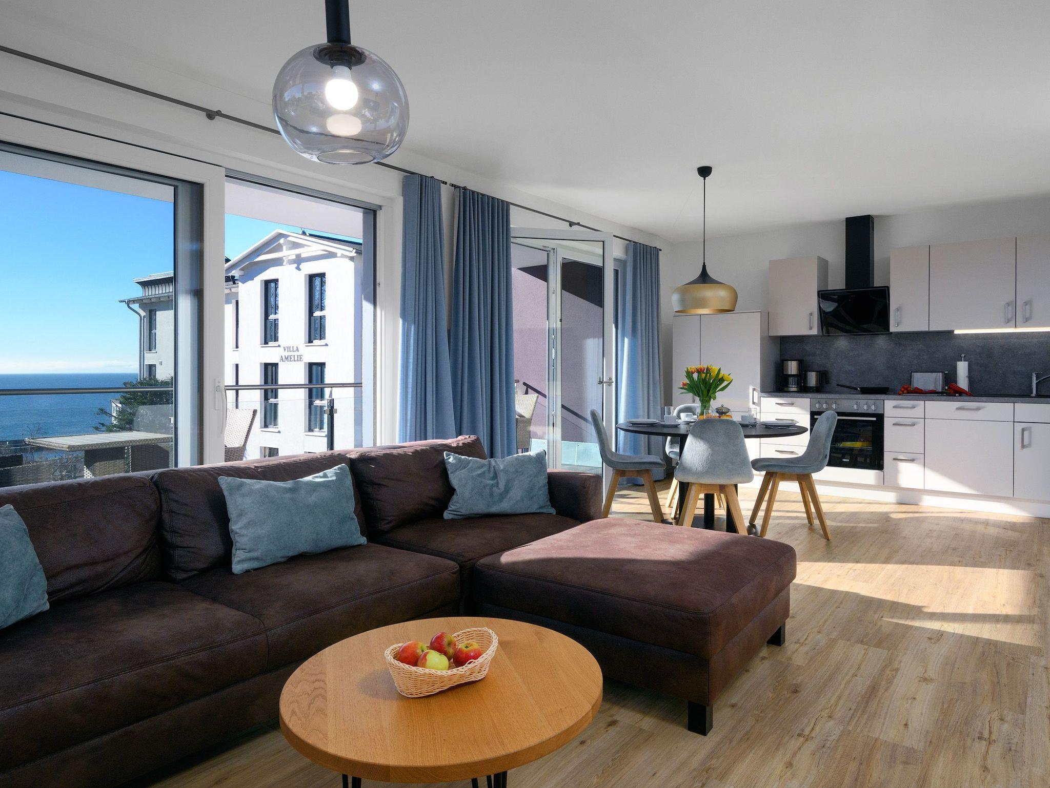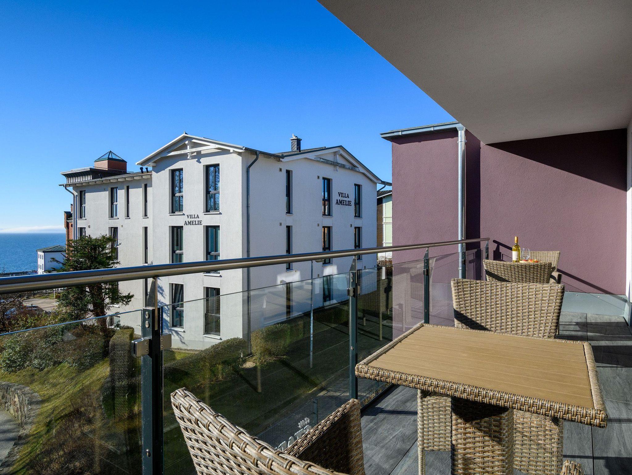 Moderne Ferienwohnung in Sassnitz mit Meerblick, Balkon und hochwertiger Ausstattung für einen komfortablen Urlaub.