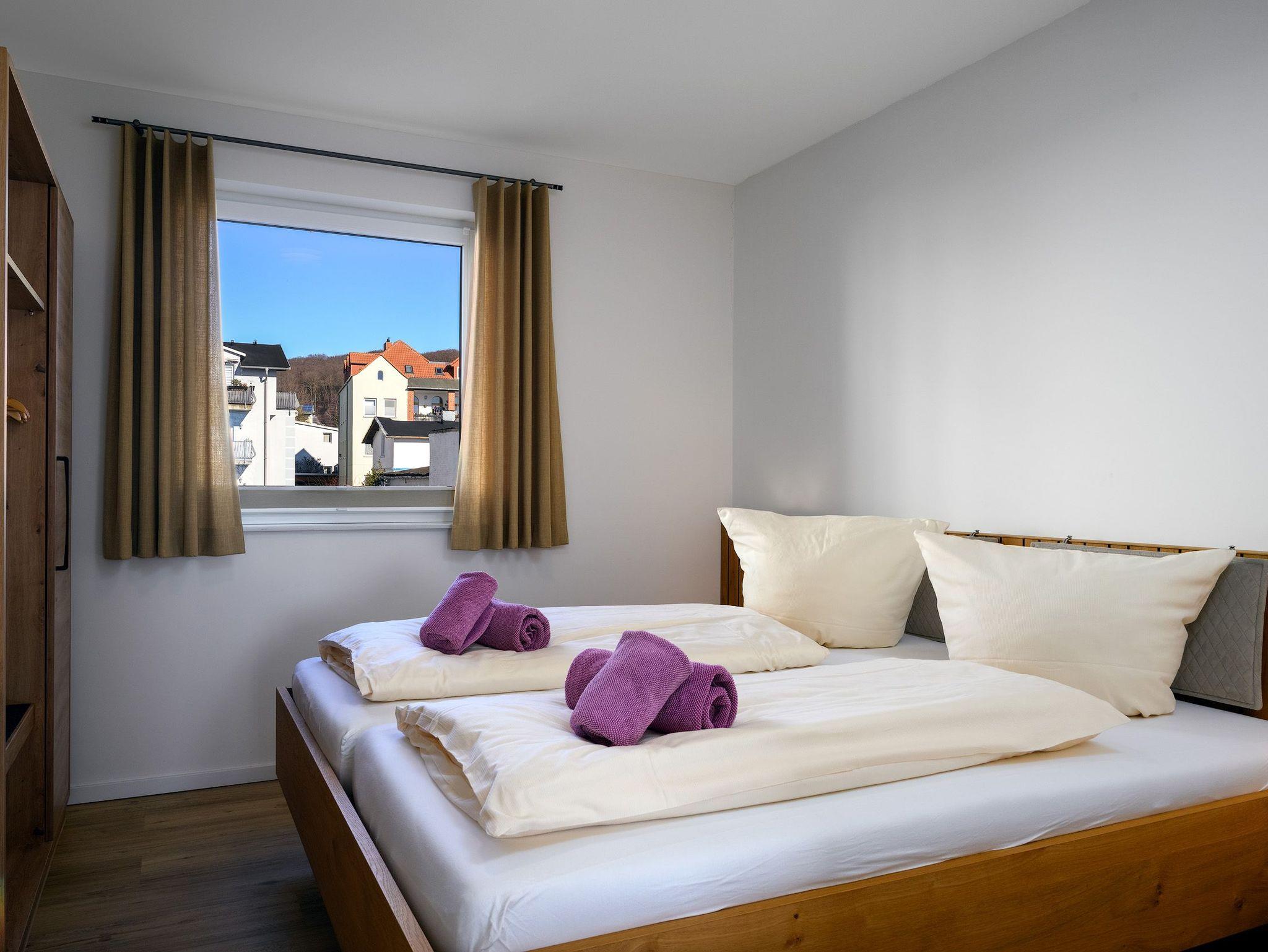 Die neue & hochwertig ausgestattete Ferienwohnung verfügt über zwei Schlafzimmer, jeweils mit Doppelbett (200 × 180) sowie ein Badezimmer mit Dusche, Badewanne & WC sowie Fön.