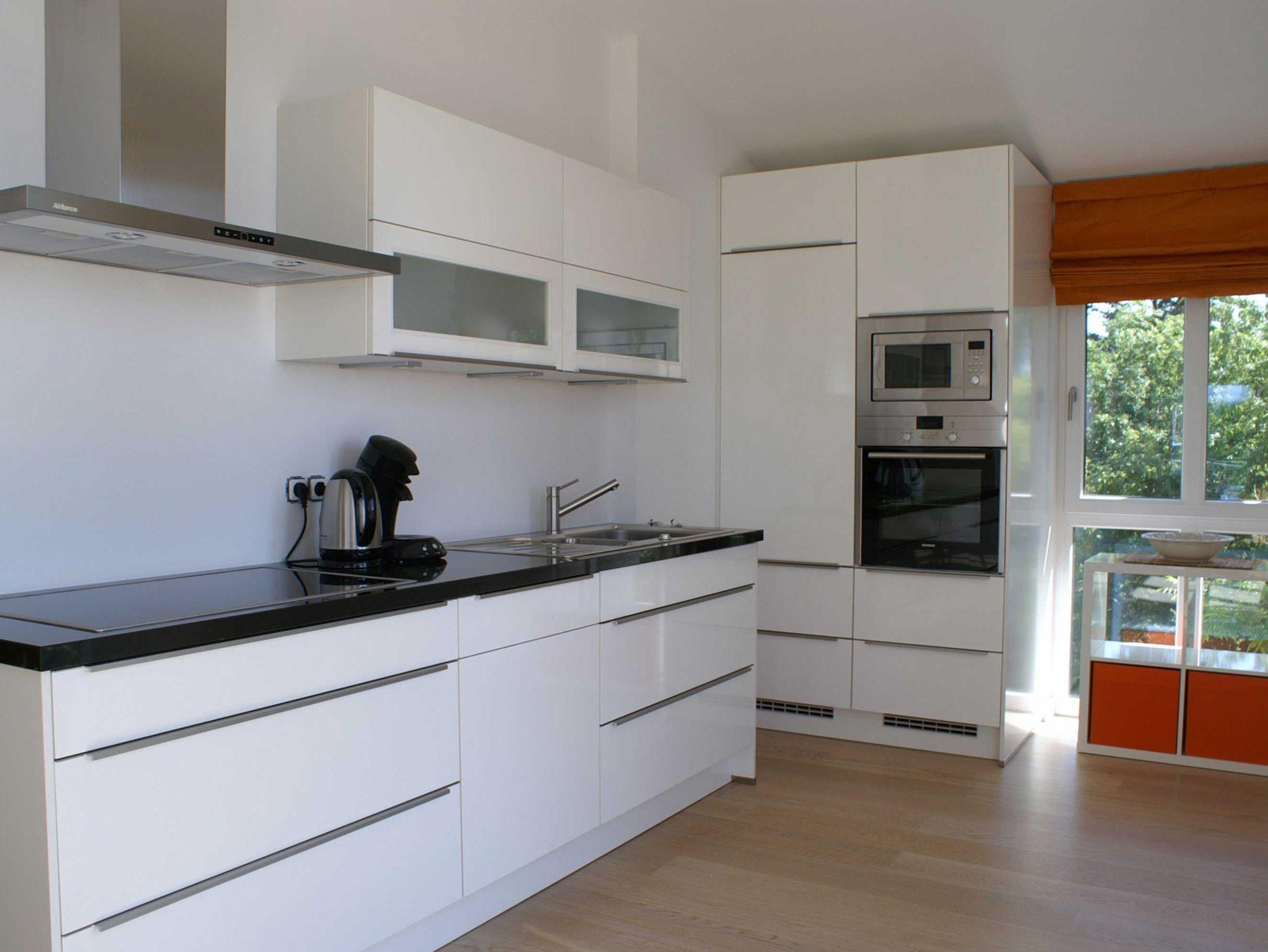 • neue hochwertige Markenküche in Hochglanz weiß (Granit-Arbeitsplatte mit Induktionsherd, Backofen, Mikrowelle etc.)