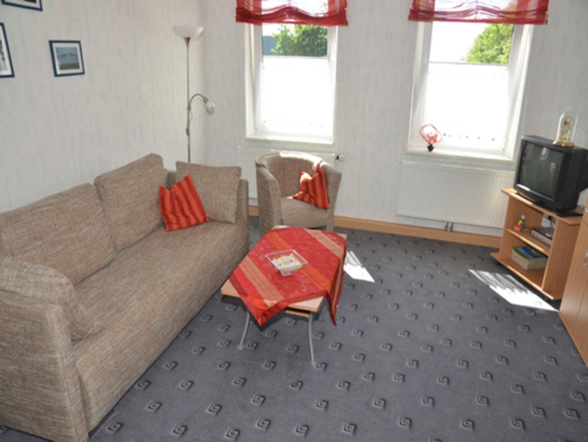 Die Ferienwohnung besteht aus einem gemütlichen Wohnzimmer mit Sitzgruppe. Diese wird bei Aufbettung die Schlafgelegenheit für den dritten und vierten Gast. Sie ist als Nichtraucherwohnung ausgelegt. Das Schlafzimmer verfügt über ein Doppelbett. In der vollständig eingerichteten Küche gibt es einen Esstisch für vier Personen. Das Bad hat eine Badewanne mit Duschabtrennung und WC.