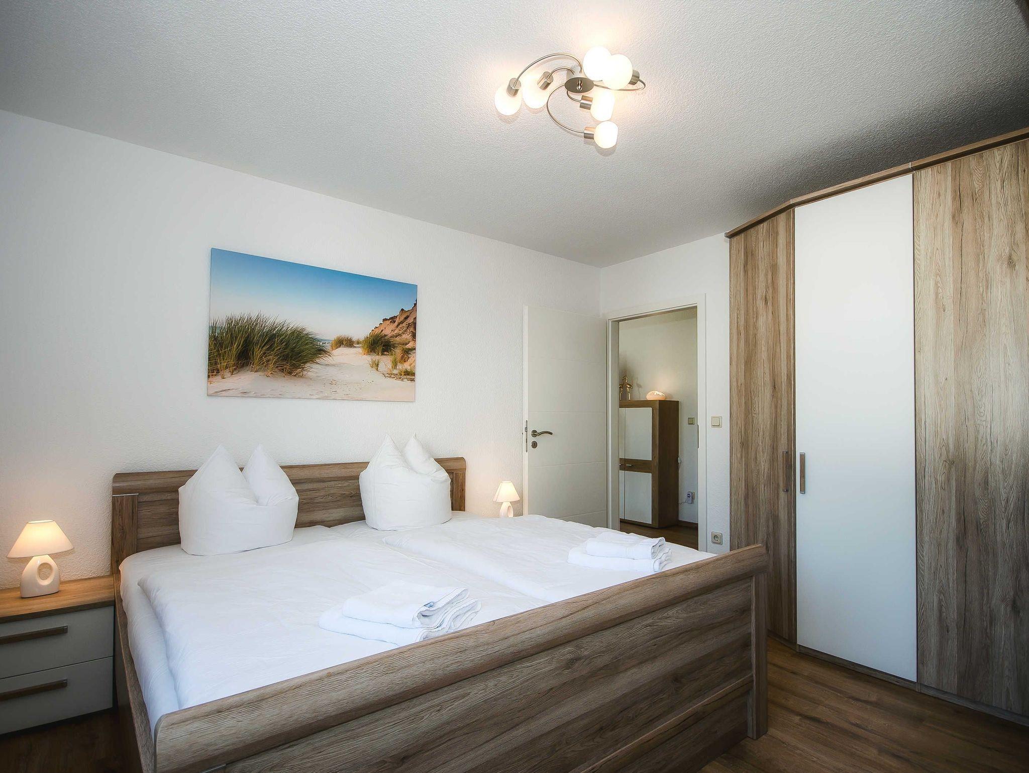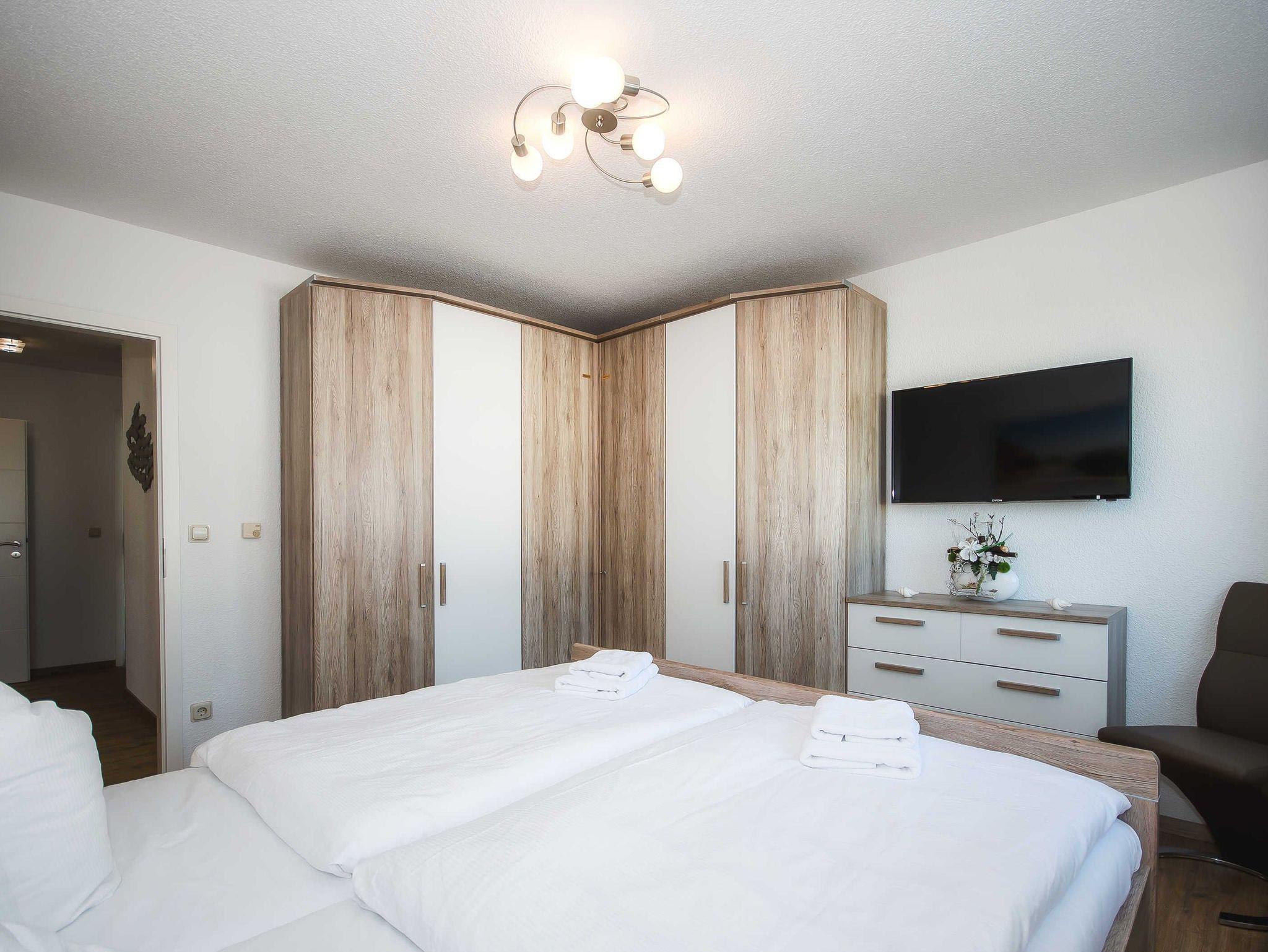 Das Schlafzimmer bietet einen hohen Schlafkomfort und viel Stauraum. Zur Ausstattung des Schlafzimmers gehört auch ein LED TV (40-Zoll).
