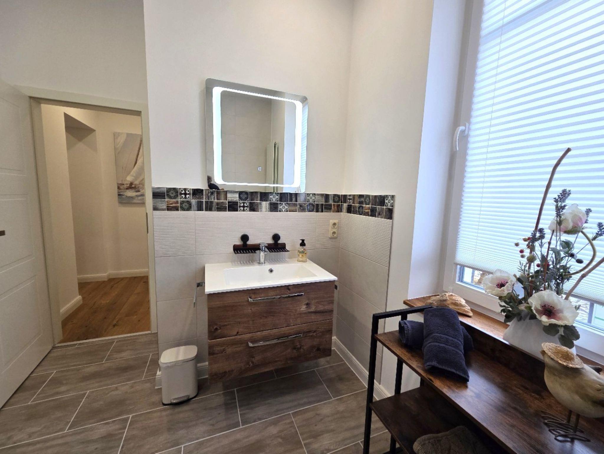 - Ein liebevoll eingerichtetes Badezimmer mit ebenerdiger Dusche,WC und Waschtisch.