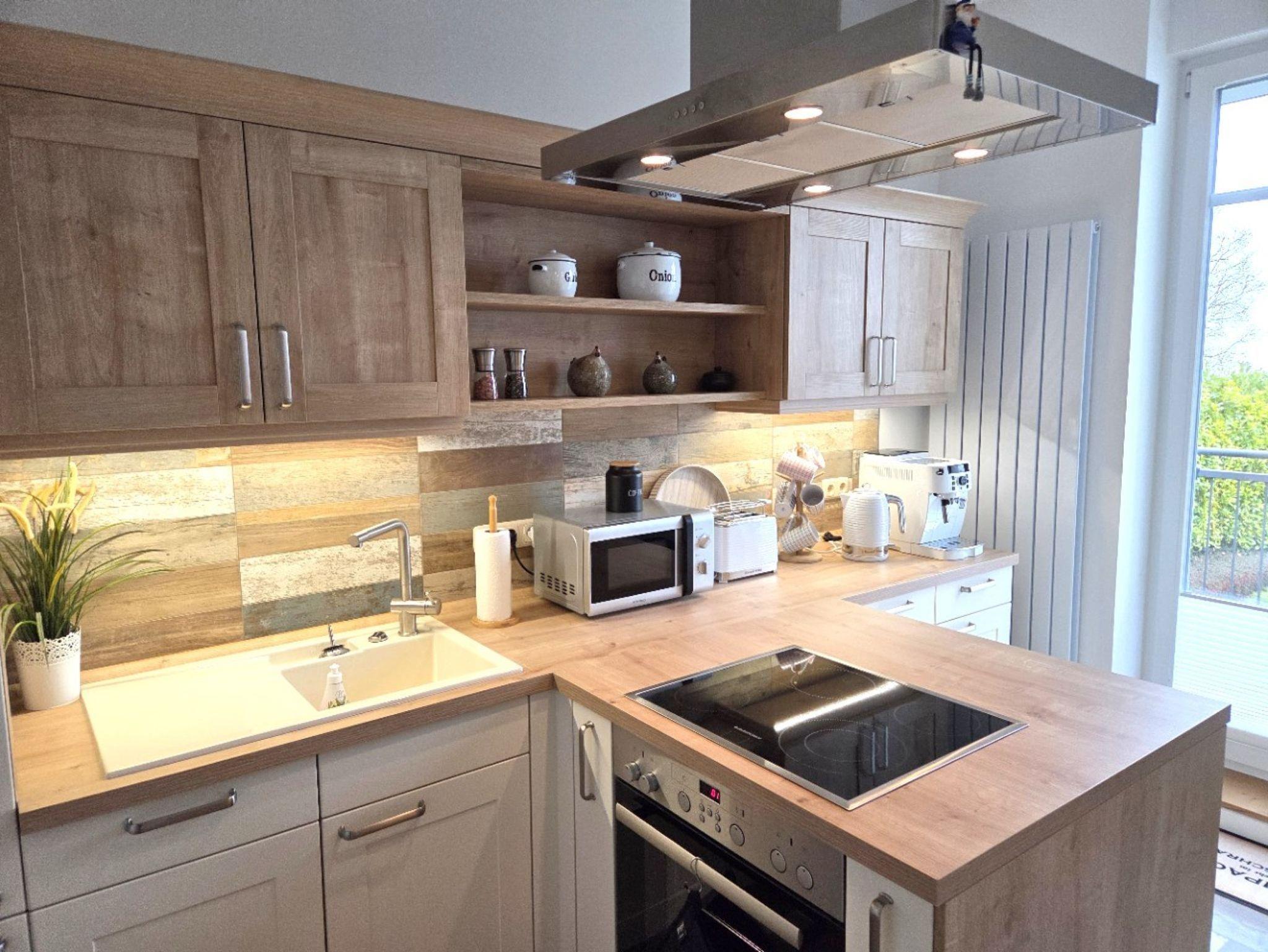 - Hochwertig, vollausgestattete Einbauküche, die offen zum Wohnbereich ist.