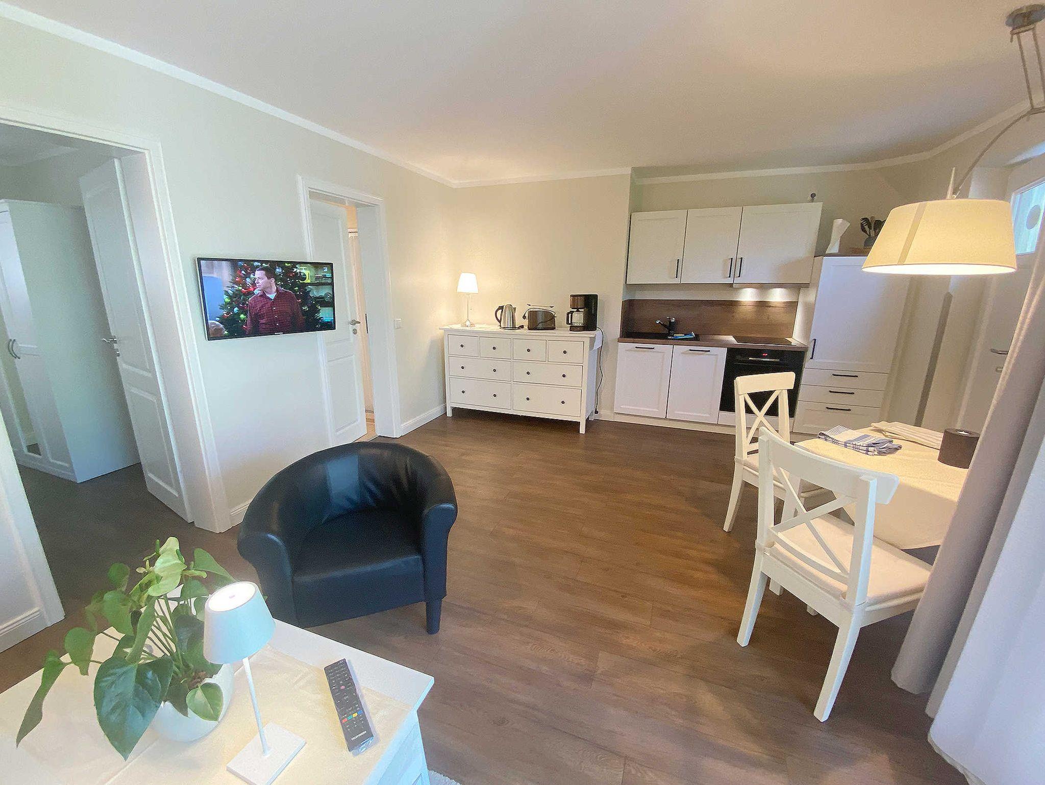 Alle Appartements bieten getrennte Wohn- und Schlafzimmer, großzügige Badezimmer mit Dusche und WC sowie eine voll ausgestattete Einbauküche im Wohnzimmer. Zudem verfügen die Wohnungen über eine Terrasse oder einen Balkon in den Appartements Nr. 3, 4 und 7 sogar mit seitlichem oder direktem Blick auf die Ostsee.