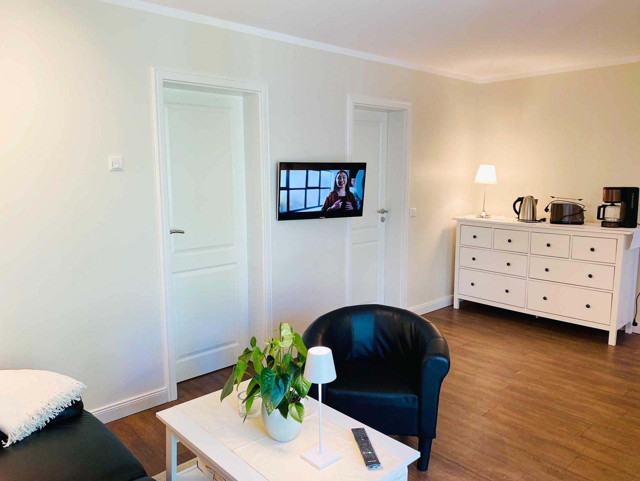 Die beiden 3-Raum-Appartements Nr. 3 und 7 bieten zusätzlich ein zweites Schlafzimmer sowie weitere Annehmlichkeiten, die Sie den Detailbeschreibungen der Wohnungen entnehmen können. In allen Appartements sorgen hochwertige Hotelbetten mit orthopädischen Matratzen für ausgezeichneten Schlafkomfort.