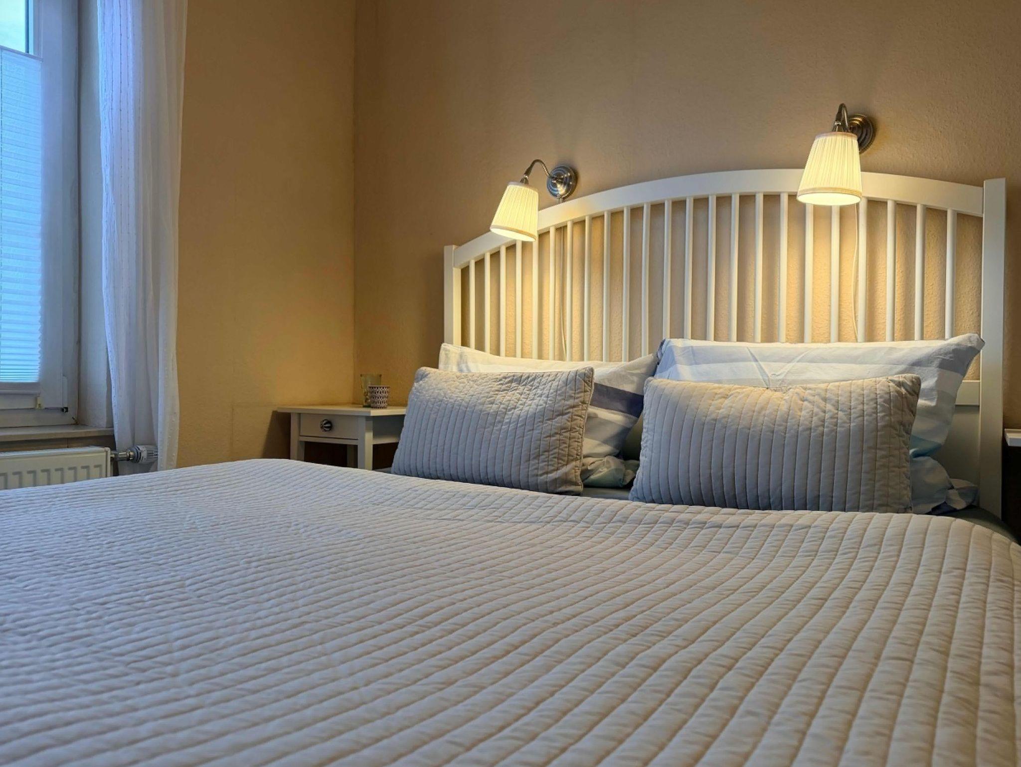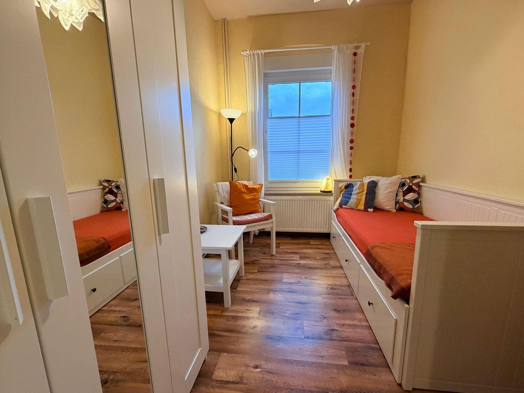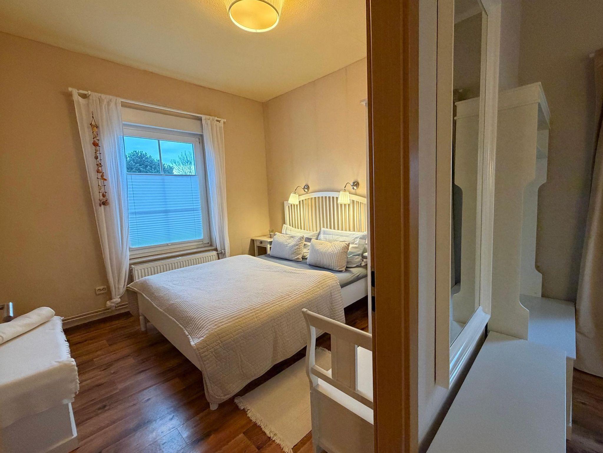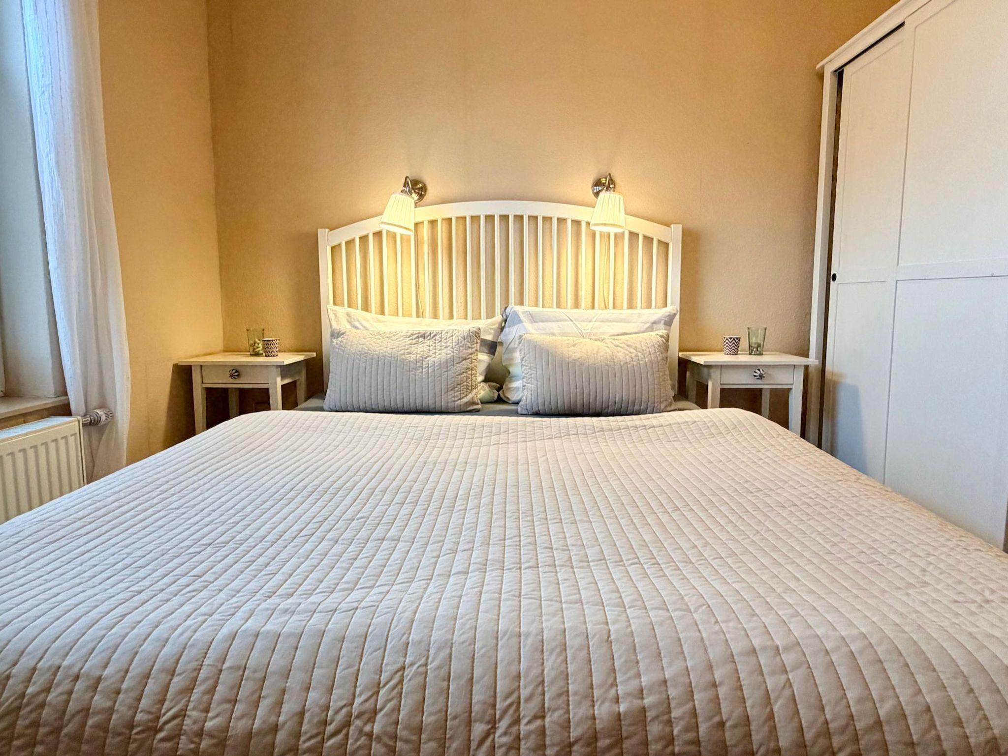 Die Wohnung verfügt über zwei separate Schlafzimmer und eignet sich ideal für Paare oder Familien. Im größeren Schlafzimmer erwartet Sie ein komfortables Doppelbett, im kleineren ein Einzelbett mit möglicher Aufbettung – perfekt auch für Kinder oder eine zusätzliche Person.