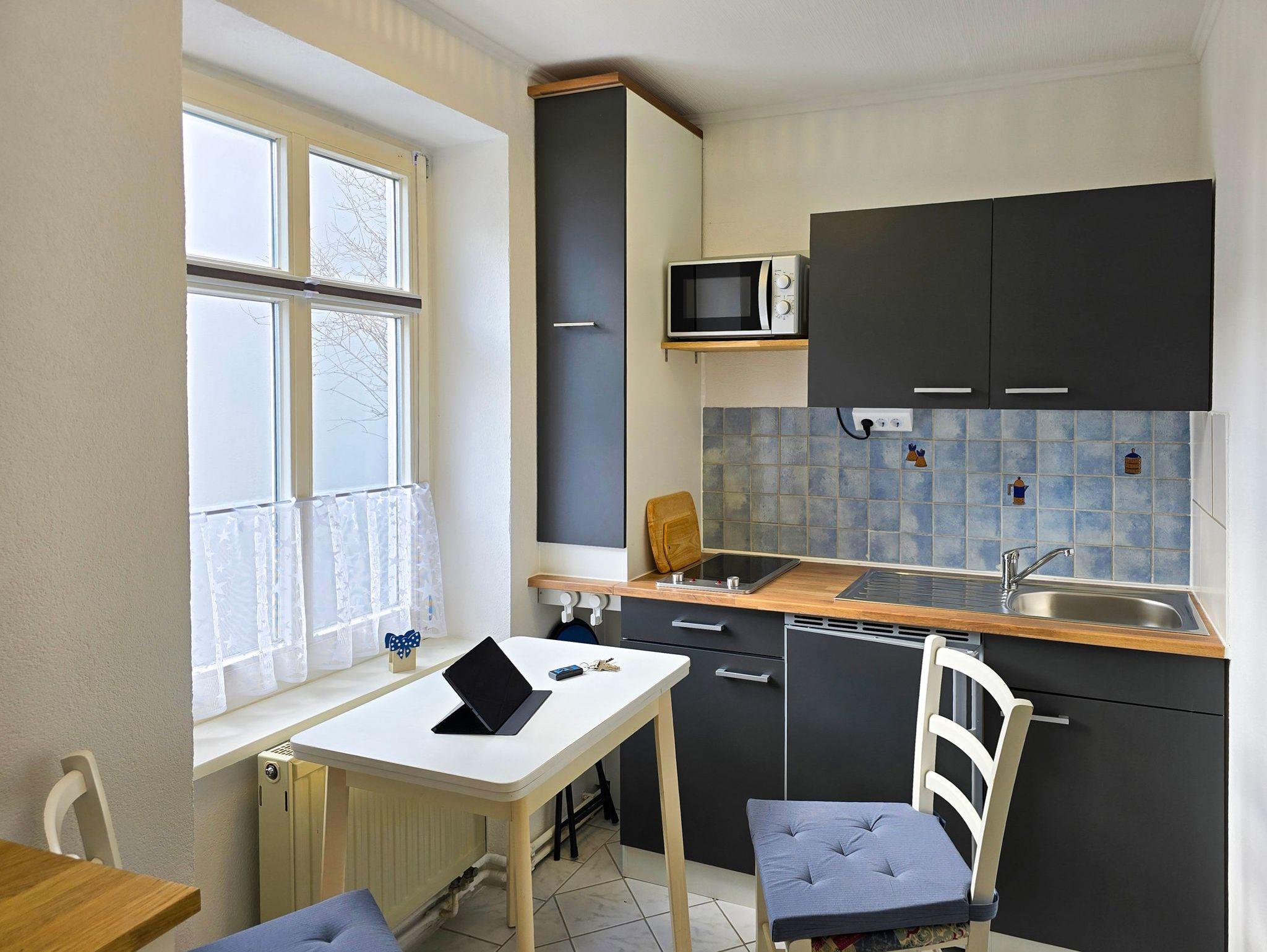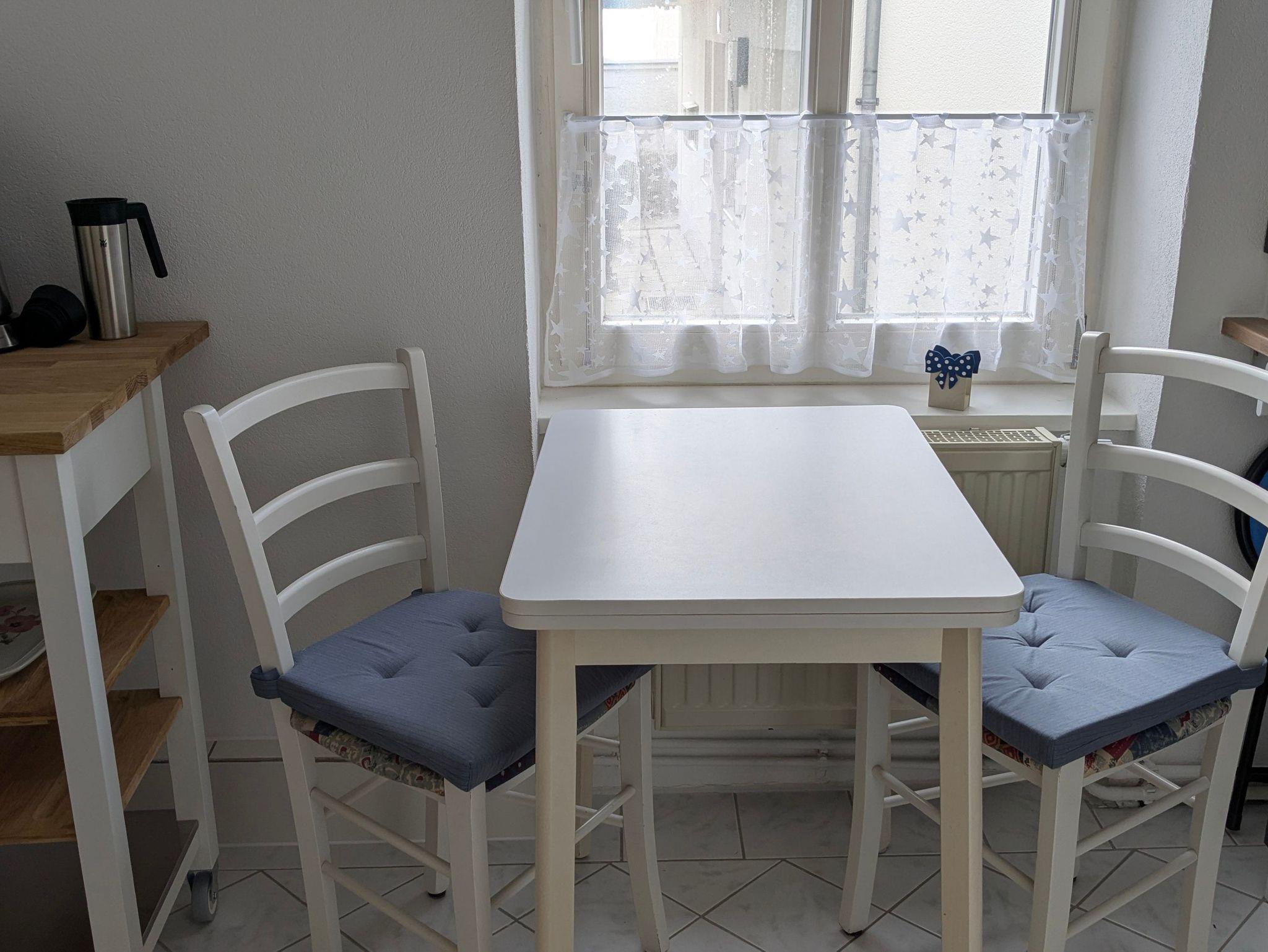 - Separate Küche und Esstisch mit 2 Stühlen. Die Küche verfügt über Kühlschrank, Mikrowelle, 2-Platten-Ceran-Kochfeld, Kaffeemaschine, Toaster, Wasserkocher und diversen Küchenutensilien.