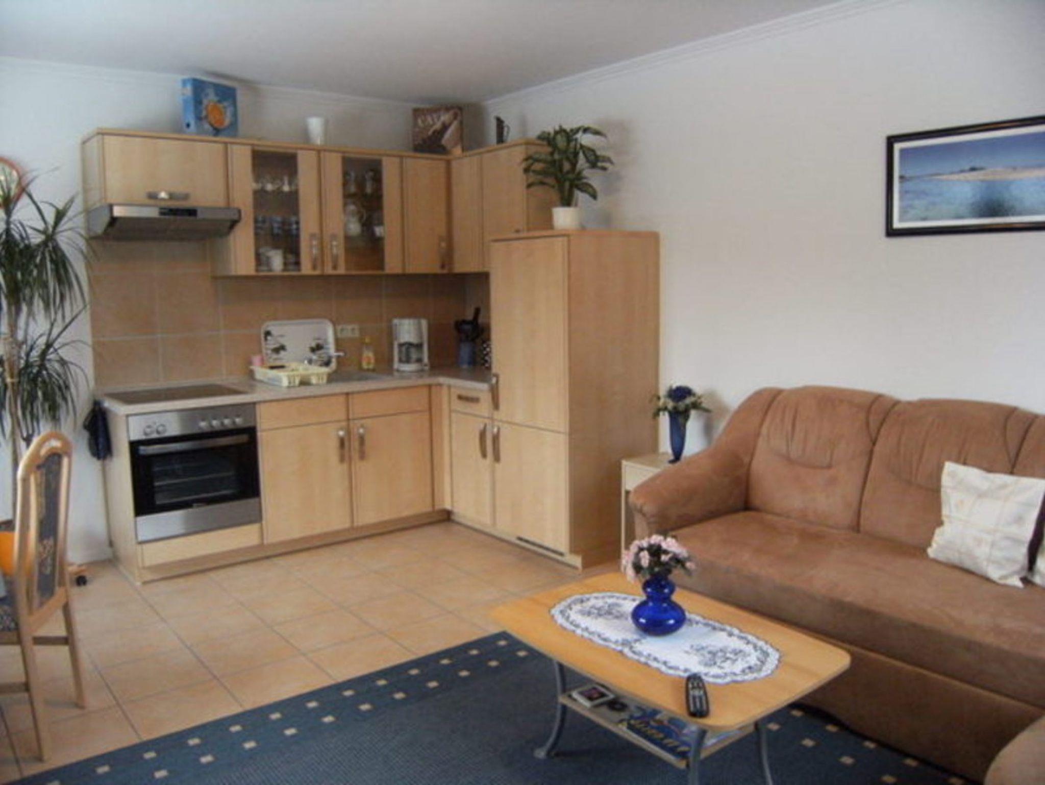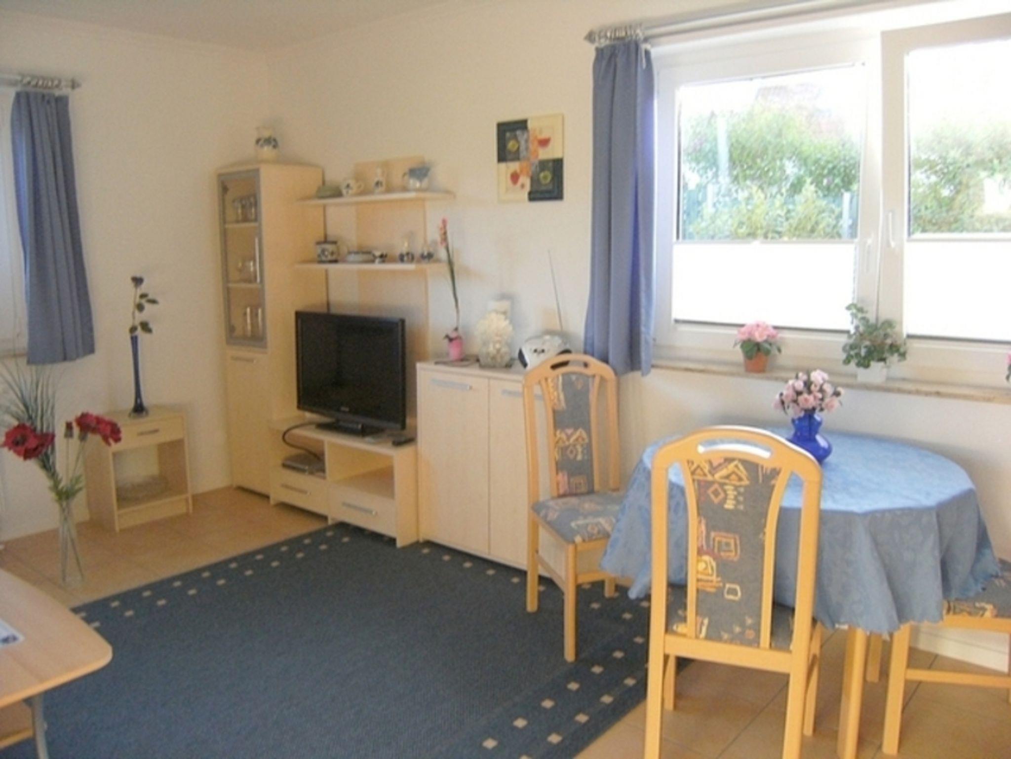 In der neuen, gemütlichen Ferienwohnung befindet sich eine Wohnstube mit bequemer Polsterecke , Anbauwand mit Radio und Flachbildschirm (Sat-TV). Ausserdem finden Sie hier eine Küchenzeile mit vielen Geräten, Gläsern Geschirr, und Töpfen sowie eine Sitzecke mit Ausblick in den großen Garten.