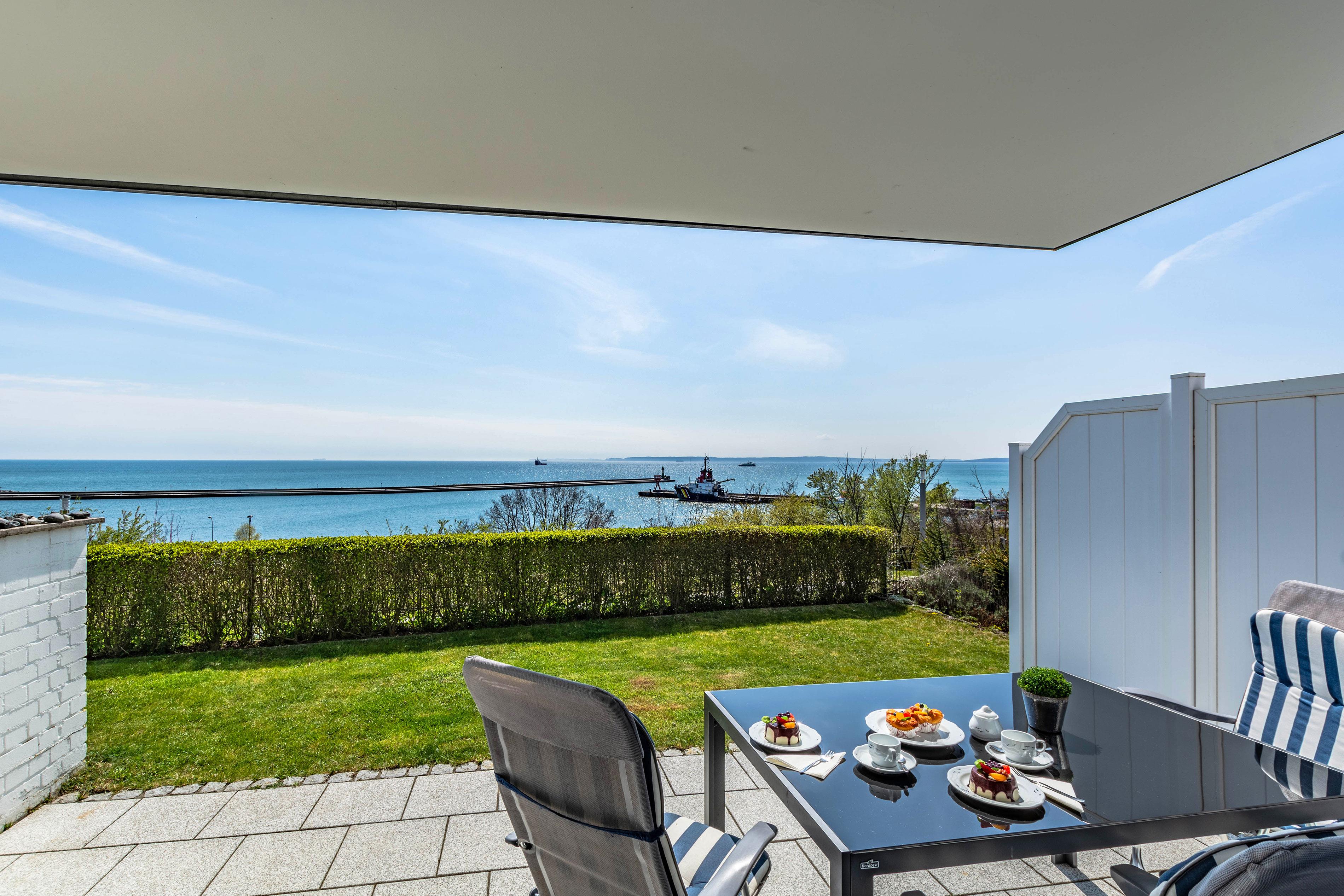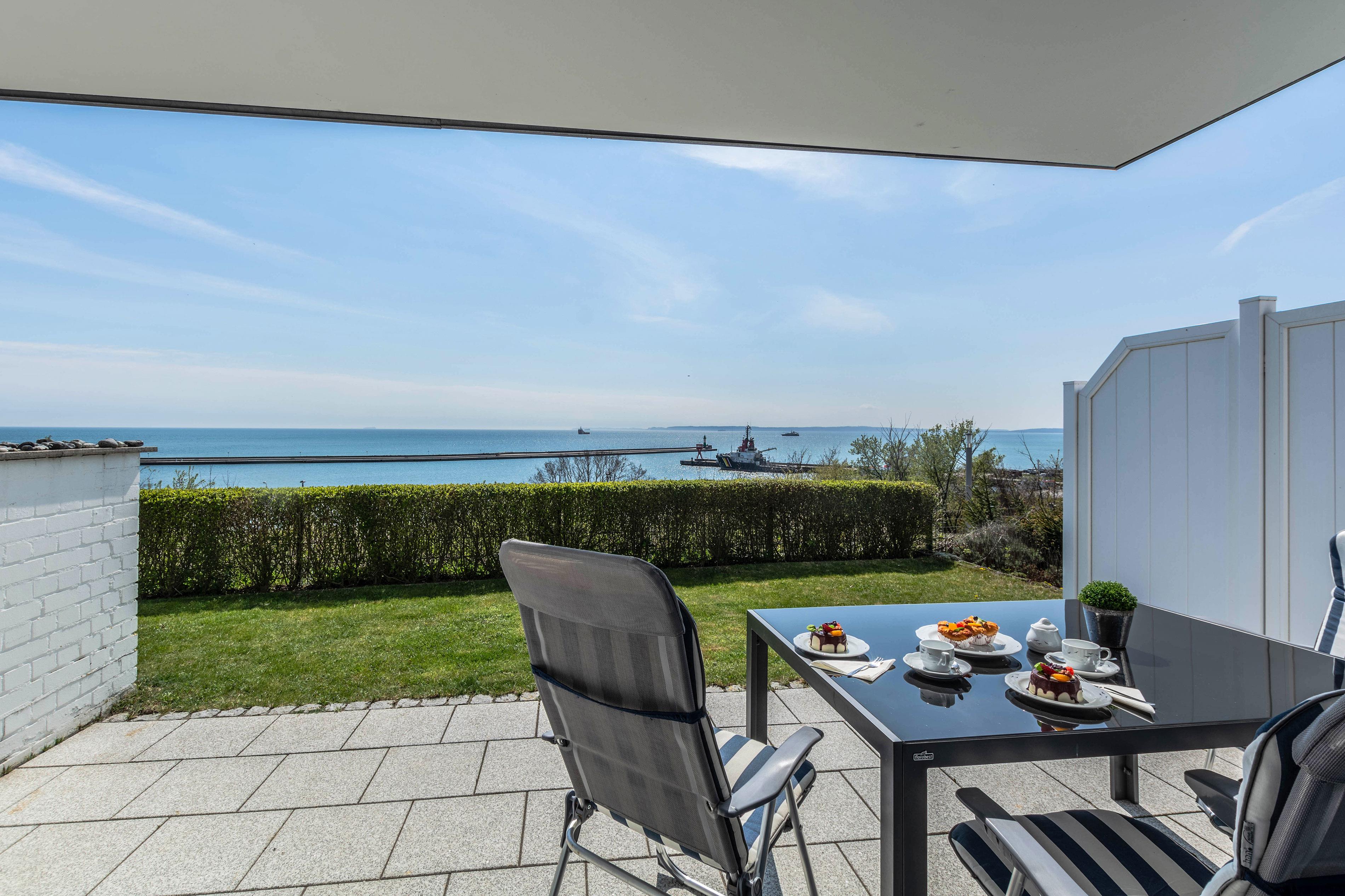 Lassen Sie den Abend nach einem erlebnisreichen Tag gemütlich auf der Terrasse ausklingen und genießen Sie den direkten Blick auf das Meer.