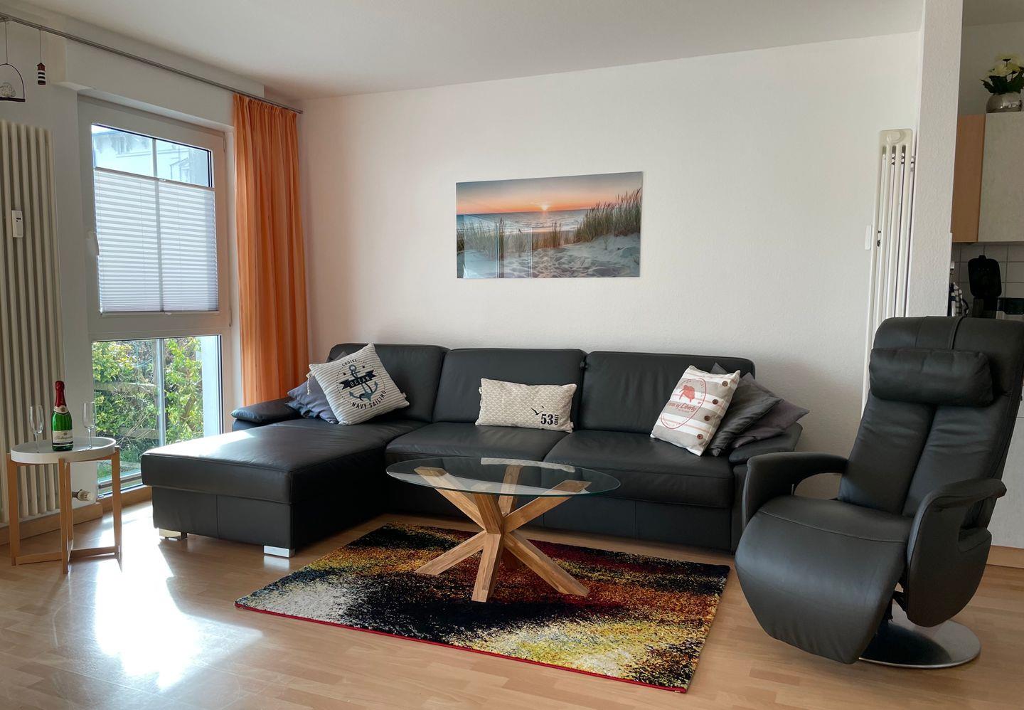 Modernes Appartement "Sonnenaufgang" mit Garten und Tiefgaragenstellplatz in Sassnitz, nahe Hafen und Strand.