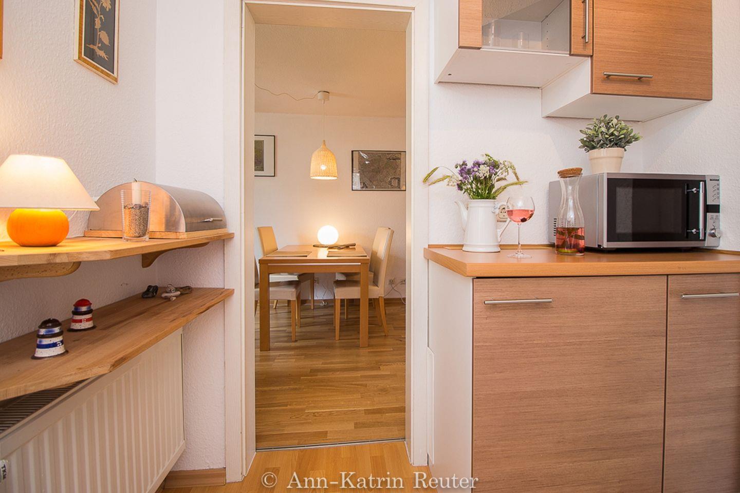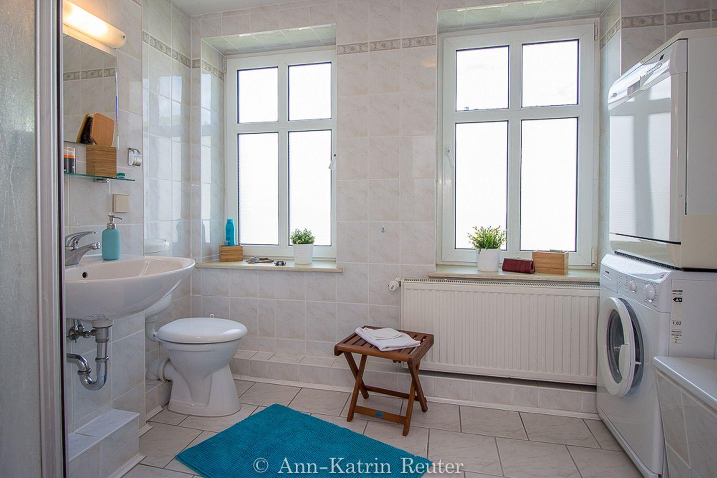 Die komfortable Ferienwohnung "Strandluft" befindet sich in der ersten Etage des historischen Hauses und hat eine Größe von ca. 43 qm. Das helle Schlafzimmer ist mit einem Doppelbett, einem Sessel, einem Kleiderschrank und einem Schreibtisch ausgestattet. Aus dem Fenster des Schlafzimmers können Sie sogar einen Blick auf die Ostsee erhaschen. Im gemütlich eingerichteten Wohnbereich des Appartements finden Sie eine bequeme Sitzecke mit Schlafcouch und Flachbildfernseher sowie einen Esstisch mit 4 Stühlen. Die kleine Pantryküche ist in die Diele der Wohnung integriert. Das großzügige Tageslichtbadezimmer verfügt über eine Dusche und eine Waschmaschine. Da sie in der Küche keinen Platz mehr gefunden hat, befindet sich hier sogar noch die Geschirrspülmaschine. Die Wohnung verfügt über einen kostenfreien WLAN-Zugang und einen PKW Stellplatz. Dieser ist aber nicht direkt am Haus sondern befindet sich etwa 350 m entfernt auf einem Parkplatz.