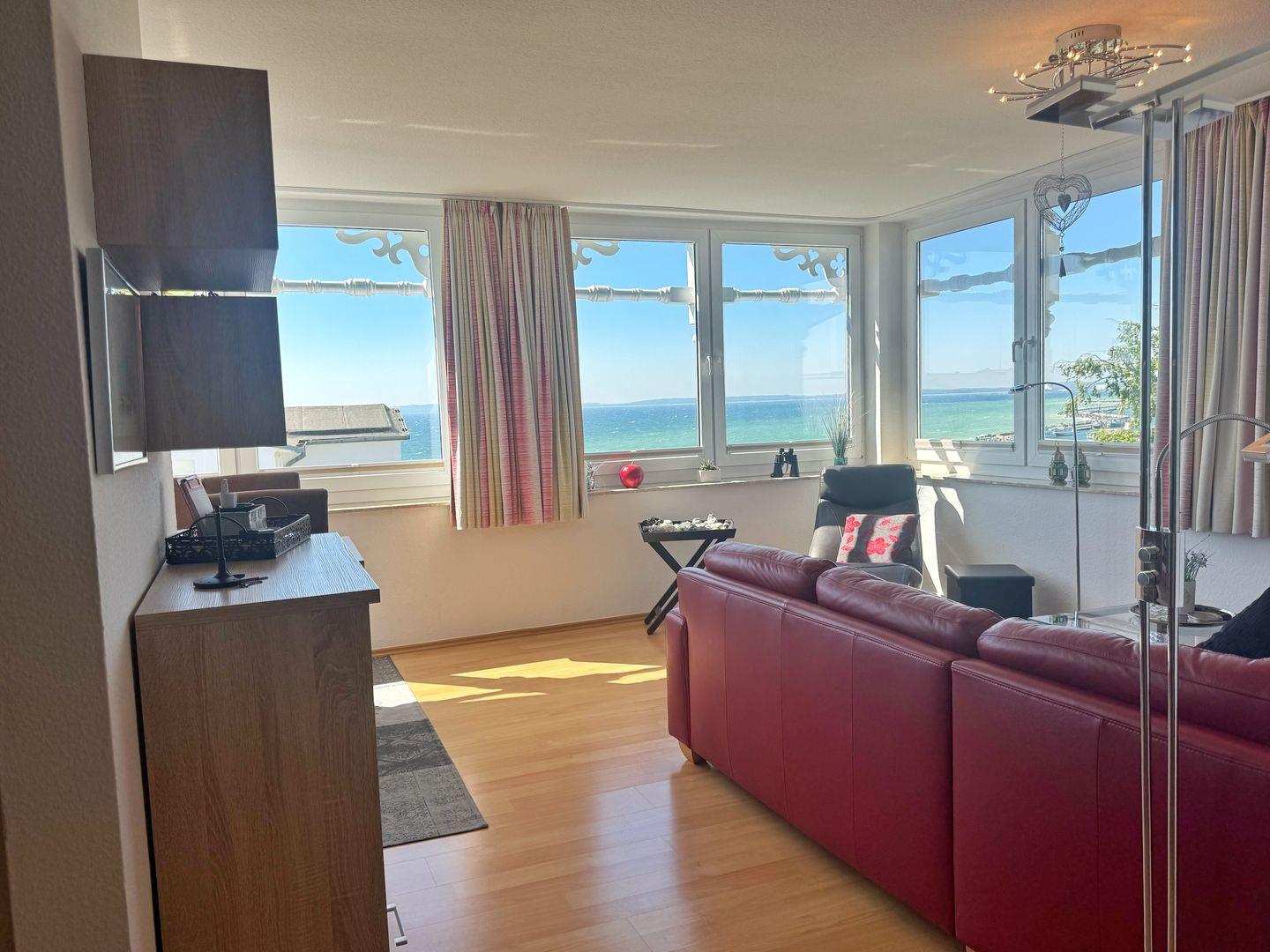 In der Villa Seeblick stehen Ihnen ein Fahrstuhl und ein Treppenhaus für die oberen Stockwerke zur Verfügung. Das vollausgestattete Ferienappartement befindet sich in der obersten Etage der Villa Seeblick mit traumhaftem Blick auf die Ostsee und über die Altstadt. Die im Juli 2017 komplett renovierte Wohnung verfügt neben einem Duschbad über ein großzügiges und helles Schlafzimmer mit Doppelbett und Flachbild-TV sowie über einen gemütlichen Wohnbereich mit einer großen nach Süden ausgerichteten Fensterfront, die den wundervollen, weiten Blick auf die Ostsee freigibt. An den charmant eingerichteten Wohnraum angeschlossen finden Sie den separaten aber offenen Küchenbereich mit moderner Einbauküche. Diese ist mit einem Kühlschrank mit Gefriermöglichkeit, einer Mikrowelle, einer Geschirrspülmaschine, einem Herd mit Backofen, Kaffeemaschine, Toaster, Wasserkocher und vielen weiteren Küchenutensilien ausgestattet. Der Essbereich befindet sich vor der großen Fensterfront im Wohnzimmer. Genießen Sie hier zum Beispiel den Sonnenaufgang bei einem gemütlichen Frühstück. Im Wohnbereich gibt es eine ausziehbare Schlafcouch für zwei Personen, Radio und einen großen Flachbildfernseher. Weitere Annehmlichkeiten des gemütlichen Appartements sind außerdem noch ein Bügelbrett und ein Bügeleisen. Der Pkw-Stellplatz zur Wohnung befindet sich im Parkhaus am Stadthafen, ca. 500 m entfernt. Eine Fahrradunterstellmöglichkeit steht nicht zur Verfügung.