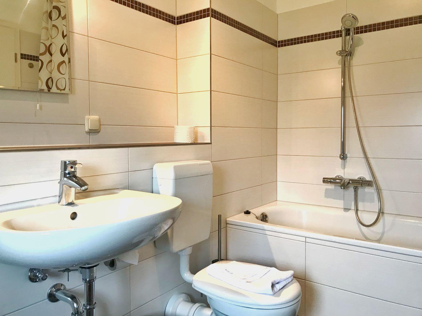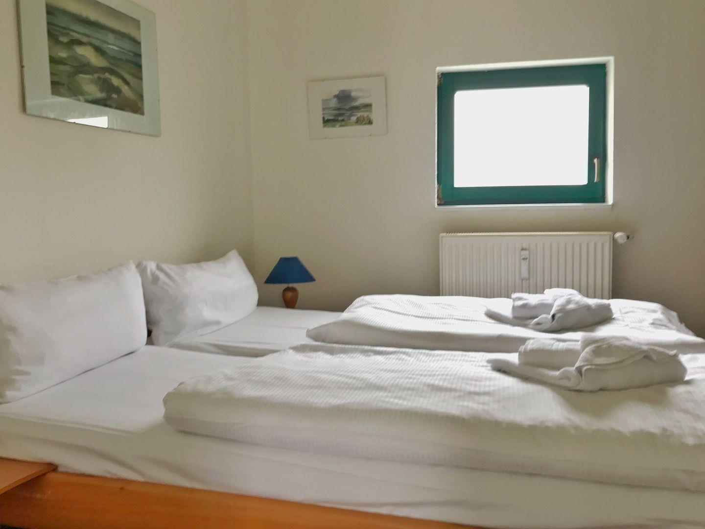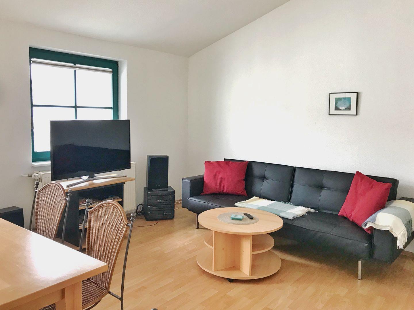 Die Wohnung im 2. OG bietet Platz für 2 Personen. Auf ca. 70qm gibt es ein Schlafzimmer mit Doppelbett, ein Wohn-Esszimmer mit integrierter Küche und Flachbild-TV sowie ein Bad mit Badewanne. Die Küche ist ausgestattet mit einem 2er-Ceranfeld, einem Mini-Backofen, Kühlschrank mit Gefrierfach, Kaffeemaschine, Toaster und Wasserkocher. Zur Wohnung gehört ein Pkw-Stellplatz am Haus.