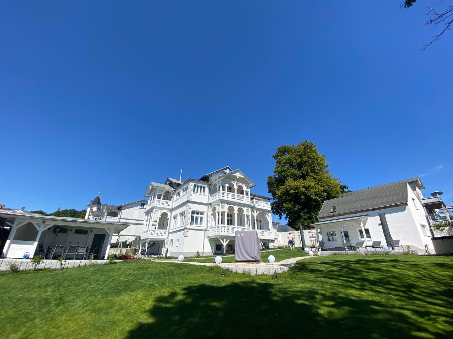 Die Villa "Jenny" ist eine hochwertig sanierte, weiße Bäder-Villa auf einem traumhaften Grundstück in erster Lage oberhalb des Steilhanges mit grandiosem Blick auf die Ostsee. Am Rande der Sassnitzer Altstadt gelegen, ist man fußläufig in nur wenigen Minuten am Alten Markt, an der Strandpromenade und am Stadthafen mit zahlreichen gastronomischen Einrichtungen und Geschäften. Die Altstadt mit den kleinen Gassen und der beeindruckenden Bäder-Architektur ist absolut sehenswert. Ebenfalls in nur wenigen Minuten ist auch der Nationalpark Jasmund erreichbar. Hier können Sie ausgedehnte Wanderungen durch den weitläufigen Buchenwald oder am Hochuferweg oberhalb der berühmten Kreidefelsen unternehmen. Die Villa "Jenny" bietet 4 hochwertige Appartements mit Balkonen und herrlichem Ostseeblick. Auf dem wunderschön angelegten und gepflegten Grundstück gibt es neben einer überdachten Grillhütte auch ein separates Saunahaus mit Ruhebereich, einen mit Holz beheizbaren Außen-Whirlpool, Sonnenliegen, Gartenmöbel und Strandkorb. Pkw-Stellplätze und Fahrradabstellmöglichkeiten sind vorhanden, ebenso ein kostenfreies WLAN. Den Gästen stehen Waschmaschine und Trockner zur Verfügung. Sie befinden sich im oberen Stockwerk - erste Tür links, neben Wohnung 4