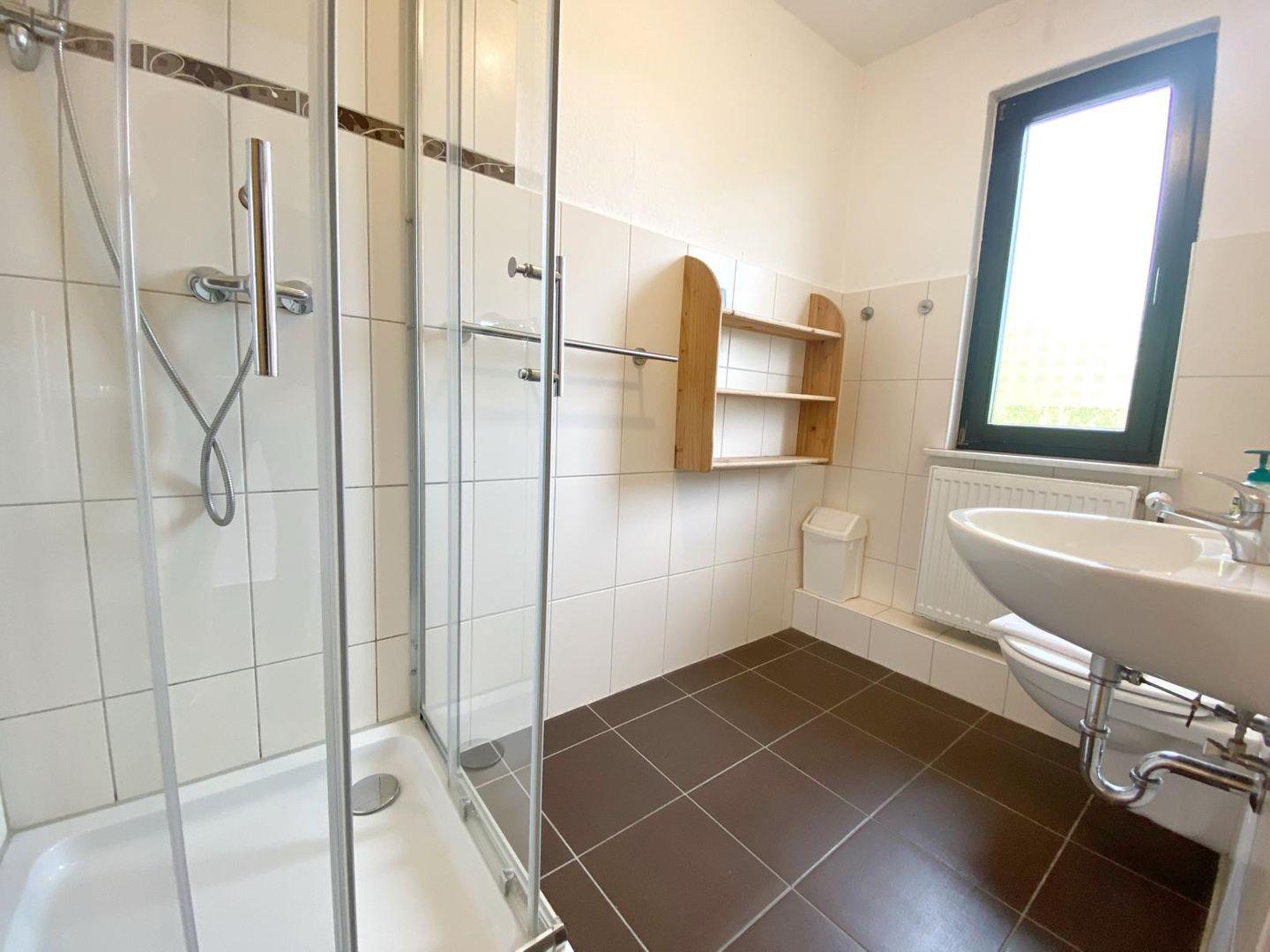 Oben rechts finden Sie das moderne Tageslichtbad mit Dusche und WC vor.