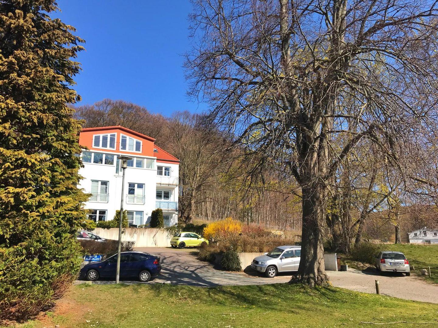 Das Appartement befindet sich in einer Stadtvilla in Sassnitz in sehr schöner, ruhiger Stadtrandlage. Das Haus in der Johanniskirchstraße liegt direkt am Rande des Nationalparks Jasmund. Sie haben den Buchenwald also direkt vor der Tür. Trotzdem ist das Objekt gegenüber des Rathauses zentrumsnah gelegen; zur Altstadt sind es nur einige Meter, ebenso zur Kirche und zum Tierpark. Auch an der Strandpromenade und im Sassnitzer Hafen sind Sie innerhalb weniger Gehminuten.