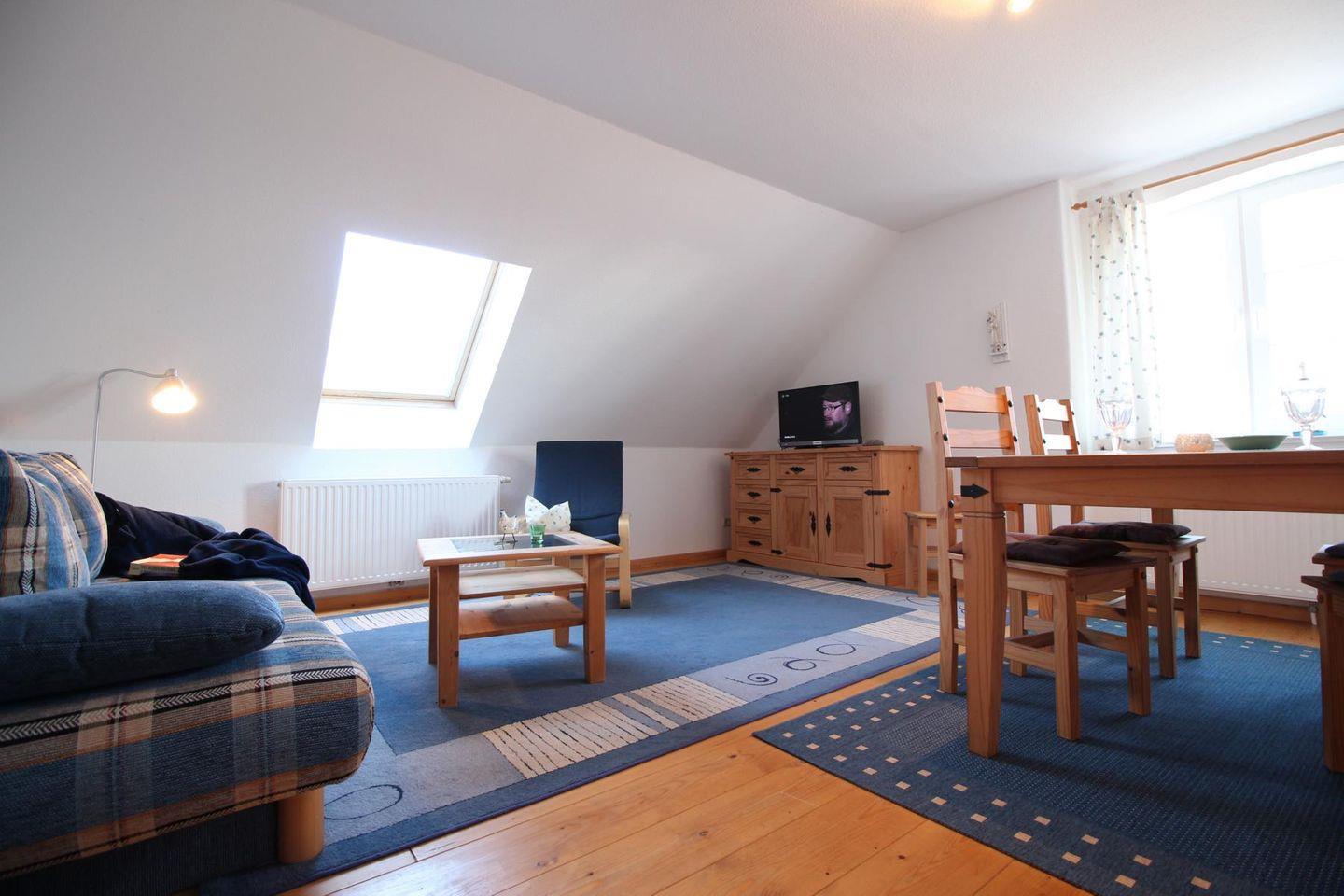 -Die bequeme Couch kann zur Aufbettung genutzt werden. Somit ist die Wohnung mit vier Personen belegbar.