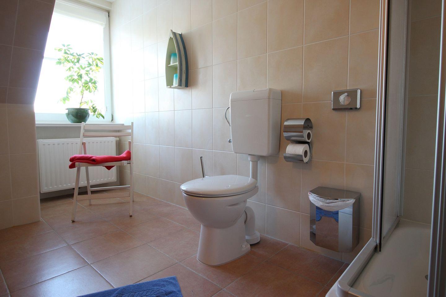 Im freundlichen Tageslichtbad gehören zur Ausstattung: