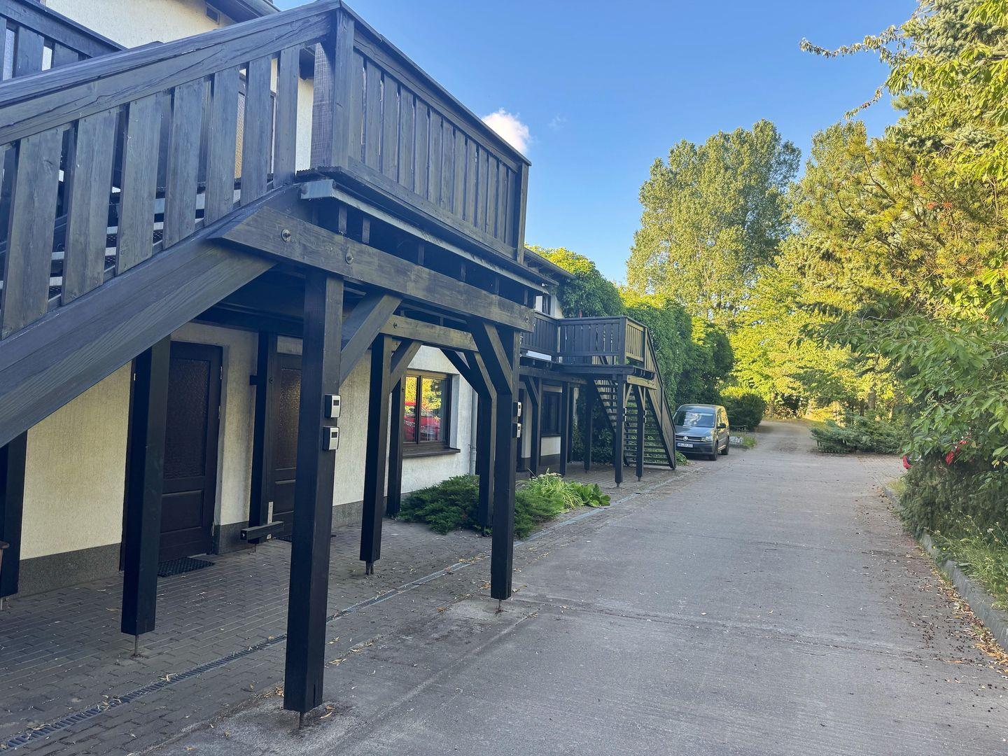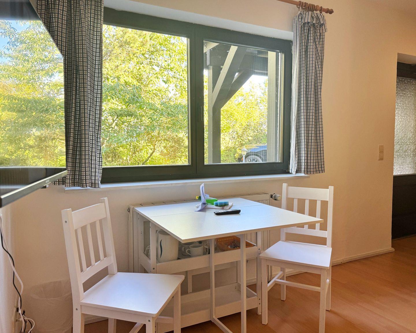 Das Doppelzimmer einfachen Standards befindet sich straßenseitig im Erdgeschoss und ist etwa ca. 25 m² groß. Es gliedert sich in einen kleinen Flur mit Kleiderschrank, ein Badezimmer mit Dusche und WC und einen Schlafraum mit 2 einem Doppelbett, einem Esstisch mit 2 Stühlen, einem kleinen Kühlschrank und einem Flachbildfernseher. Das Zimmer hat einen kostenfreien Internetzugang und einen PKW-Stellplatz.