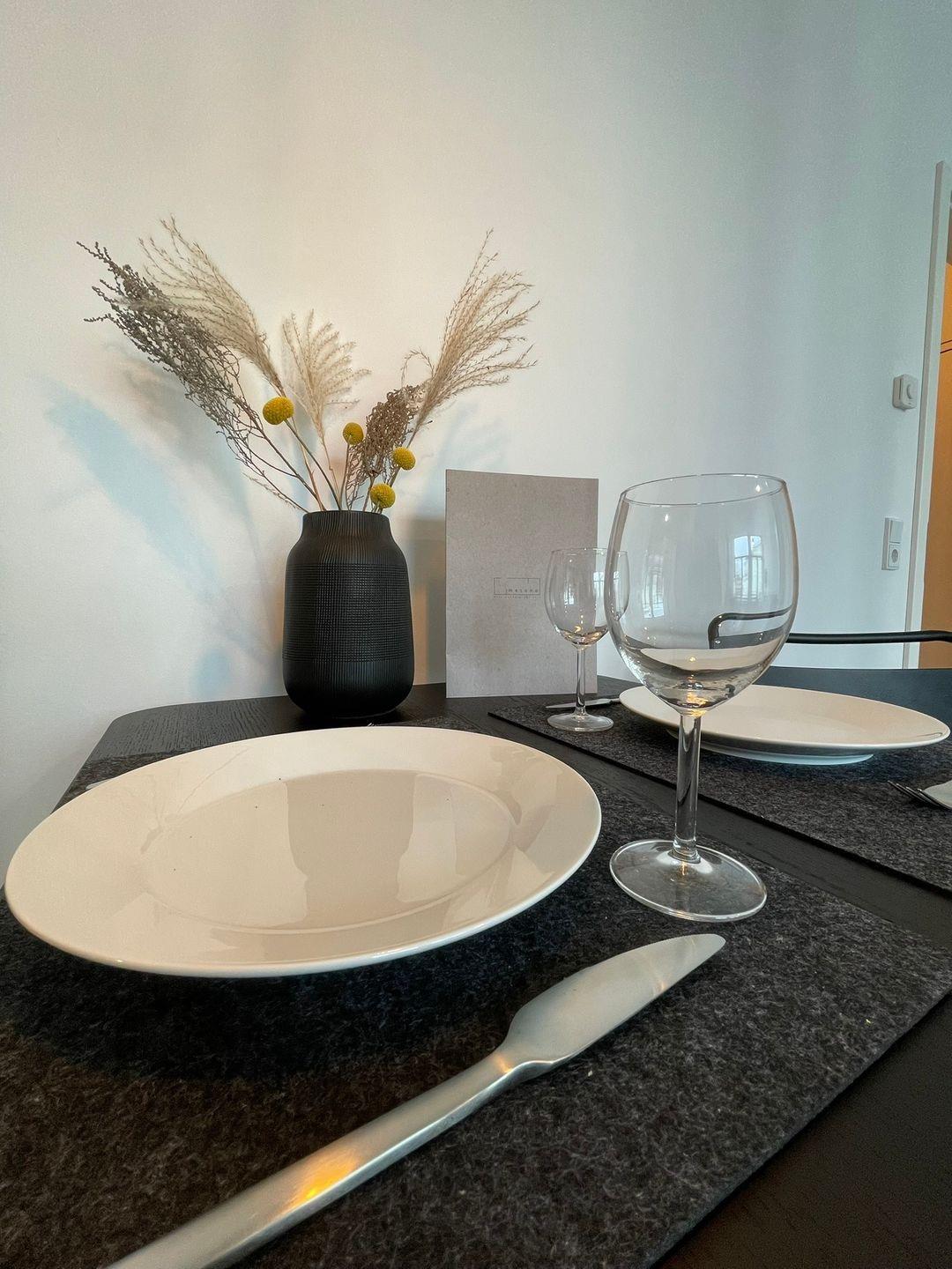 Der großzügige Wohn- und Essbereich ist mit einem Sofa sowie einem Esstisch (120 cm x 70 cm) ausgestattet. Für einen gemütlichen Fernsehabend steht ein 50“ Fernseher mit Kabelanschluss für dich bereit. Auch deinen Netflix-Account kannst du darauf nutzen. In der gesamten Wohnung stellen wir dir selbstverständlich kostenlos einen schnellen, kabellosen Internetzugang zur Verfügung.