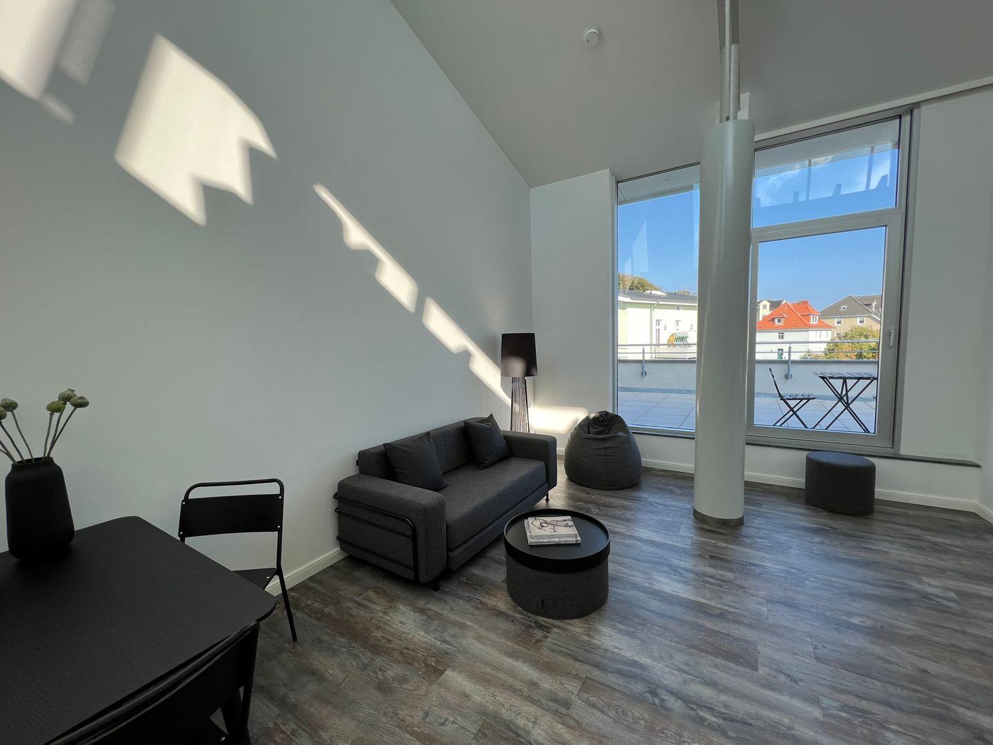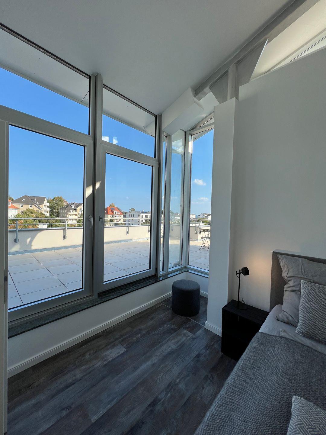 Modernes Apartment mit Dachterrasse und Seeblick in Sassnitz, ideal für entspannte Tage nahe Stadthafen.