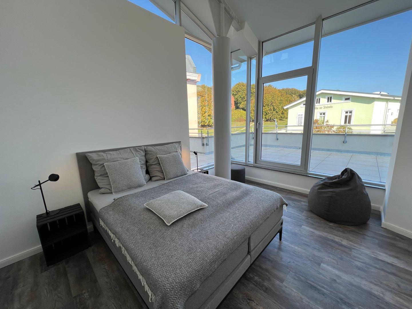 Modernes Apartment mit Dachterrasse nahe Stadthafen Sassnitz, ideal für zwei Personen und komfortablen Aufenthalt.
