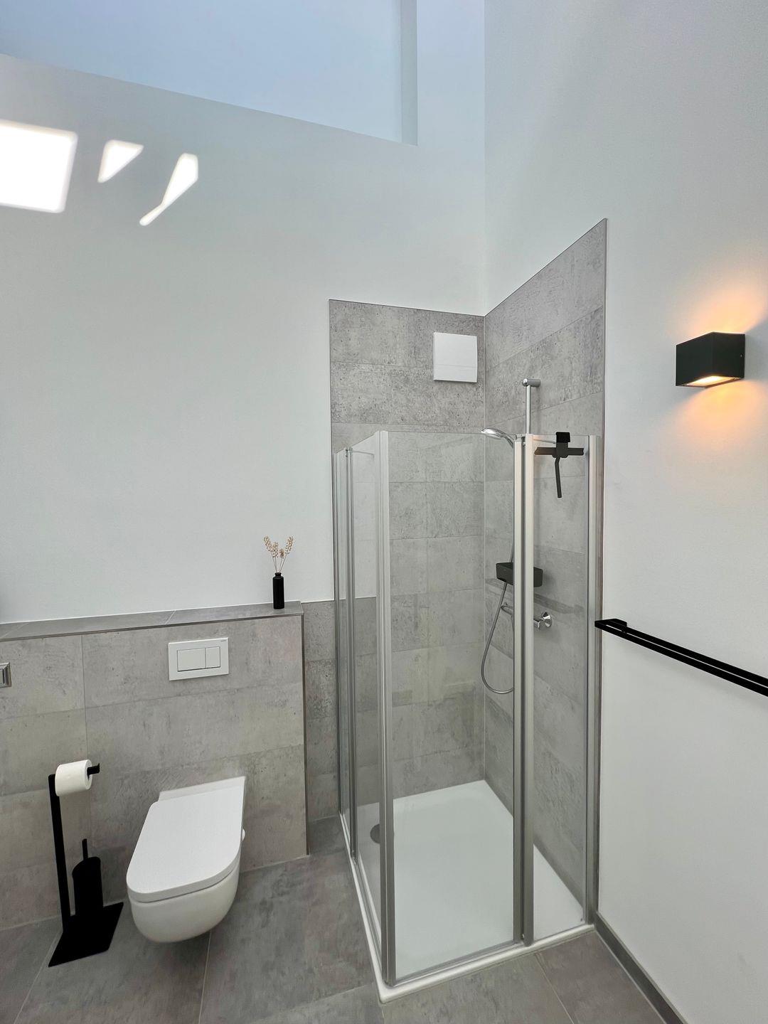 Das moderne Badezimmer mit Fußbodenheizung und Dusche bietet ausreichend Ablagemöglichkeiten für deine persönlichen Kosmetikprodukte. Handtücher, einen Haartrockner und Körperpflegeprodukte bekommst du von uns gestellt.