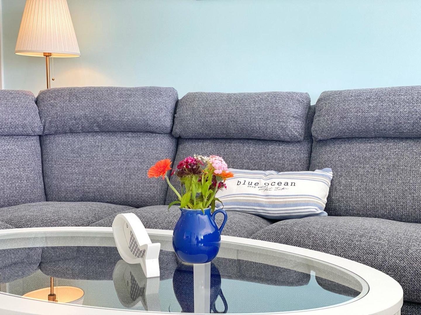 Im Wohnbereich gibt es eine gemütliche große Halbrund-Couch, die vor dem großen Flachbild-TV zum entspannen einlädt. In der verglasten Loggia steht der große Esstsich mit Traum-Ausblick.