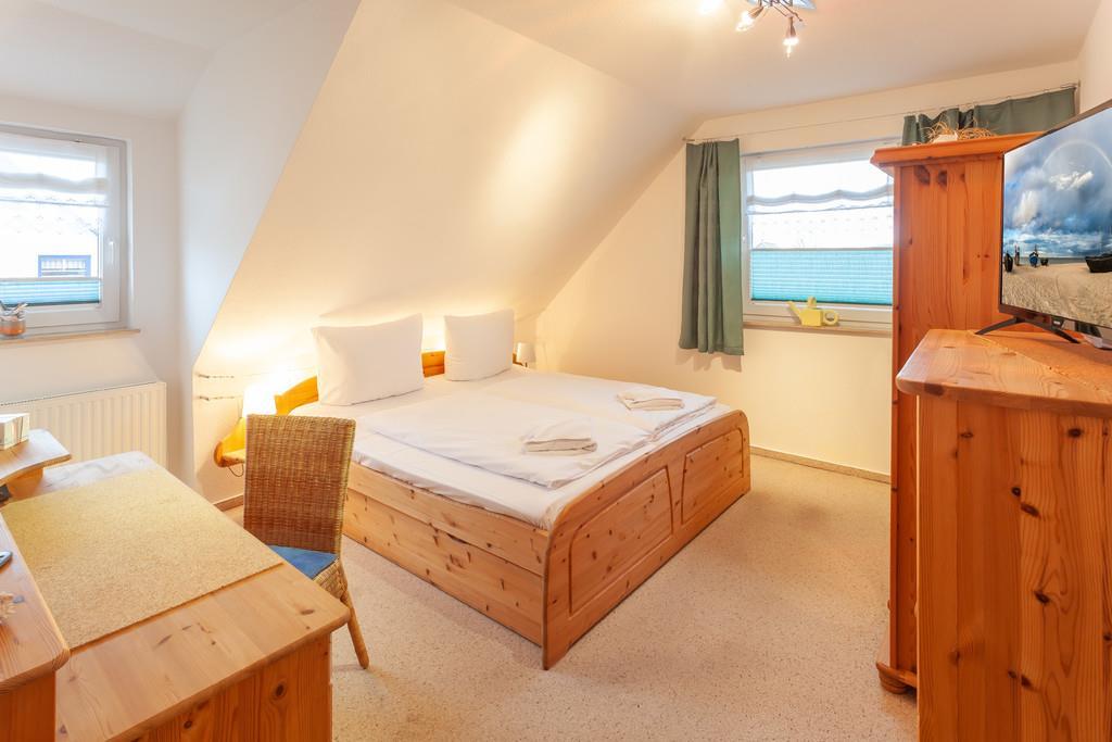 Ein Schlafzimmer ist mit einem Doppelbett ausgestattet, die beiden weiteren Schlafzimmer mit einem Doppelbett und je einem Einzelbett. Außerdem haben alle Schlafzimmer einen zusätzlichen TV.
