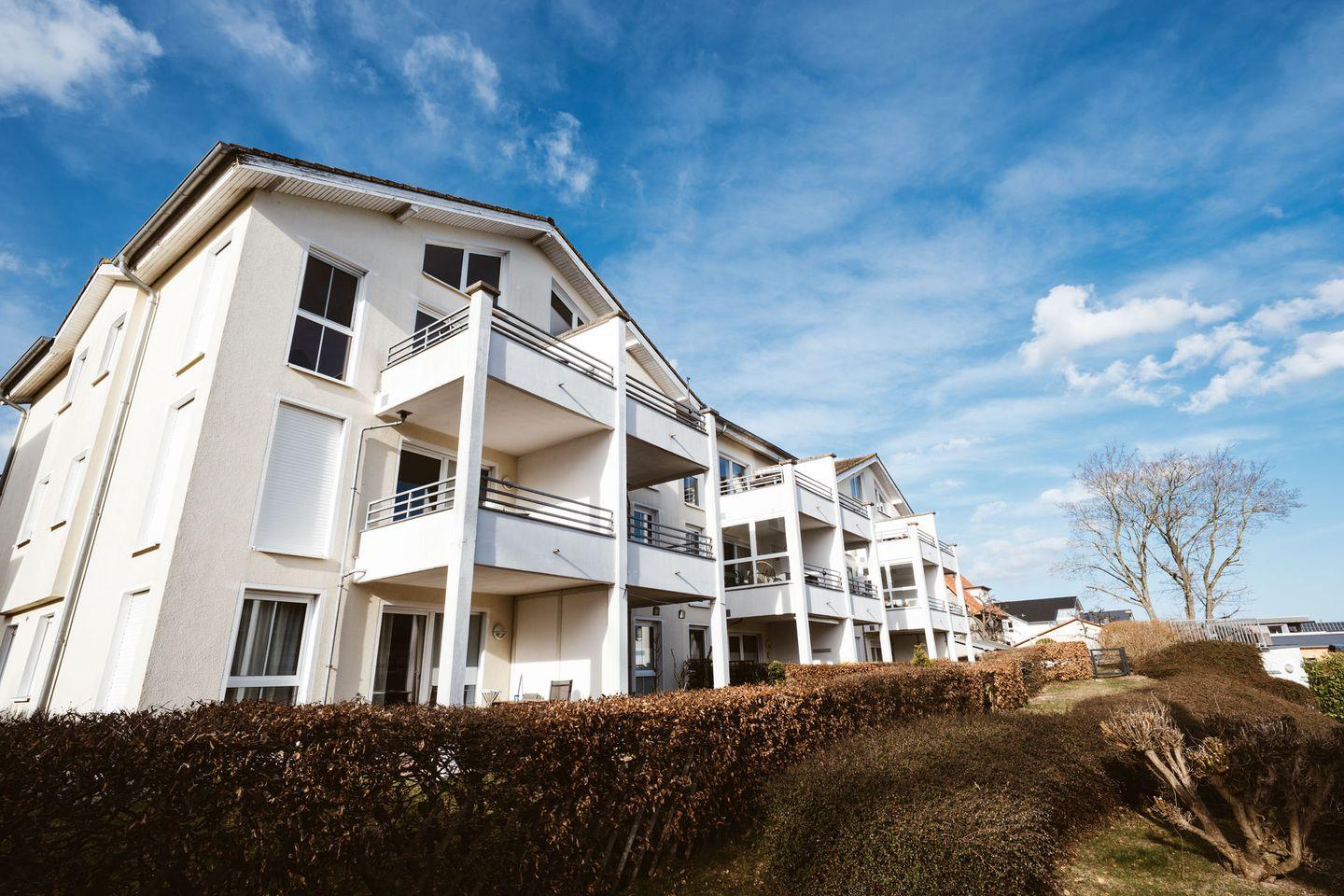 Die Wohnanlage besteht aus 3 Einzelhäusern mit mehreren Appartements. Die sehr gepflegte Anlage verfügt über eine Tiefgarage und eine Unterstellmöglichkeit für Ihre mitgebrachten Fahrräder.
