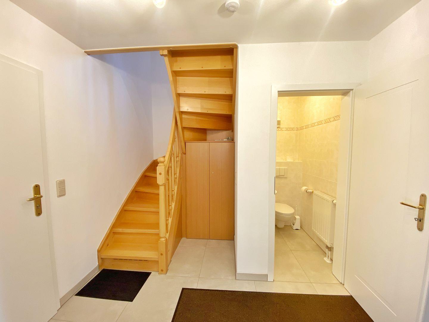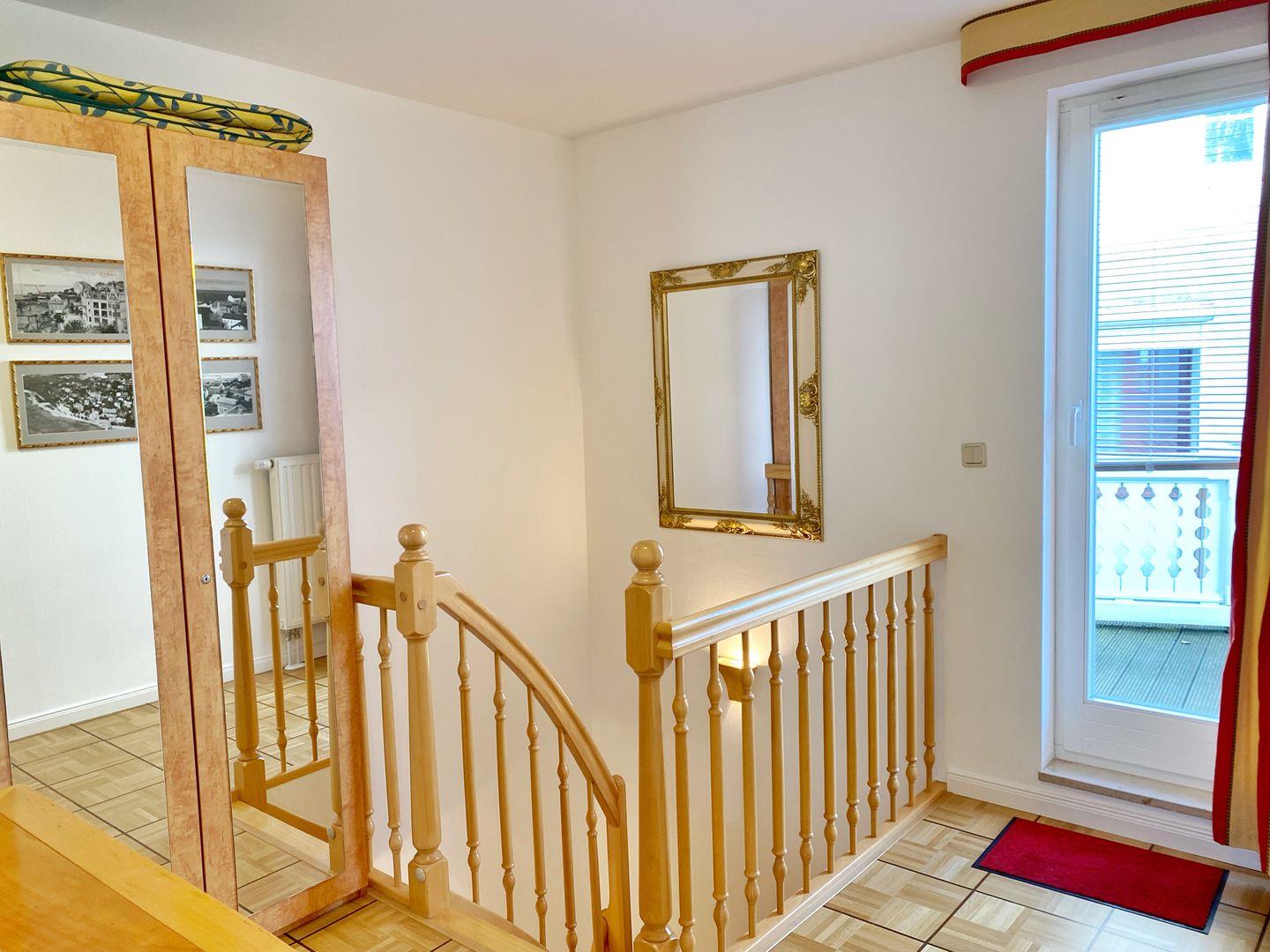 Über eine Treppe gelangt man von der Diele ins Obergeschoß.